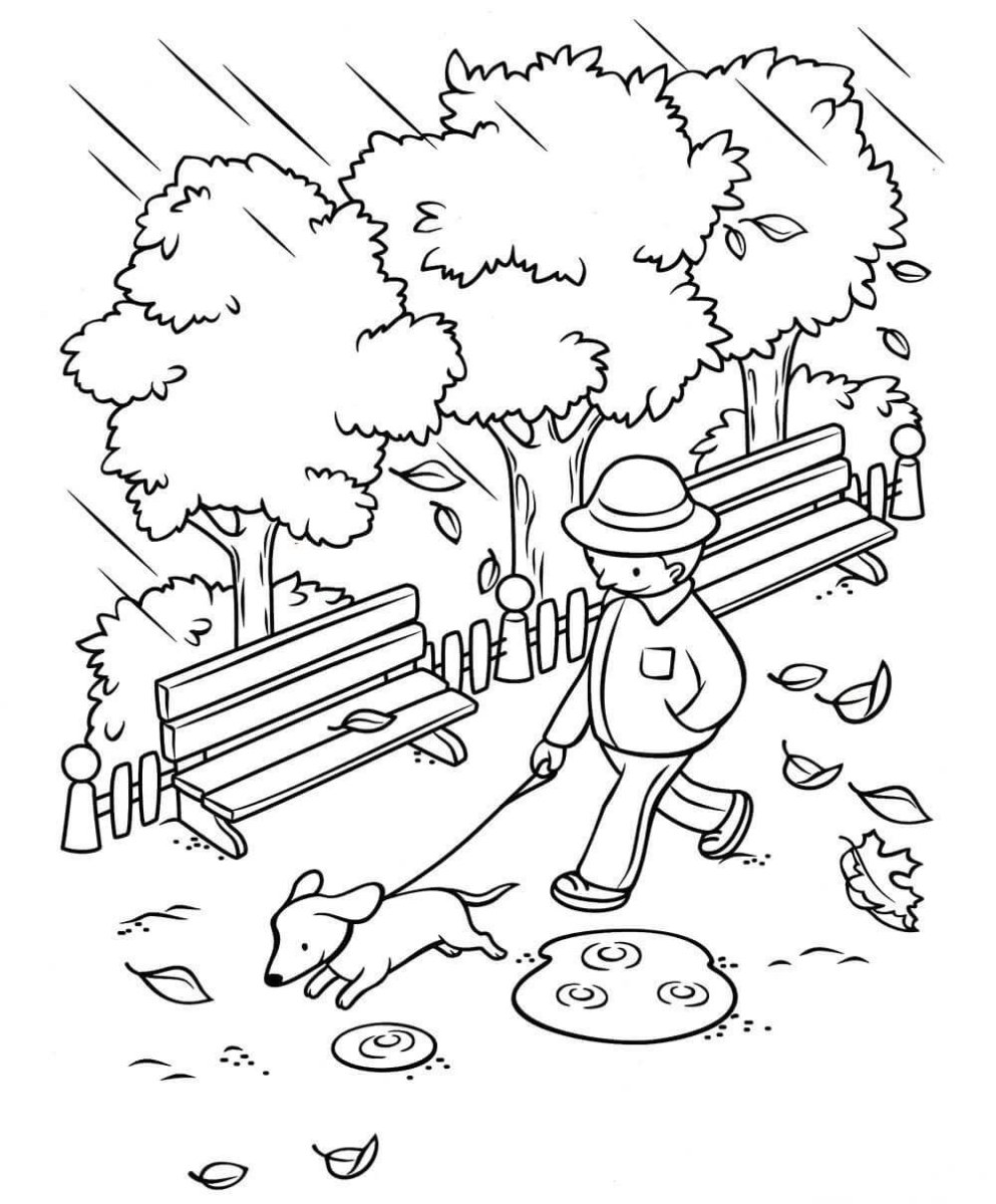 Раскраска осень в парке для детей