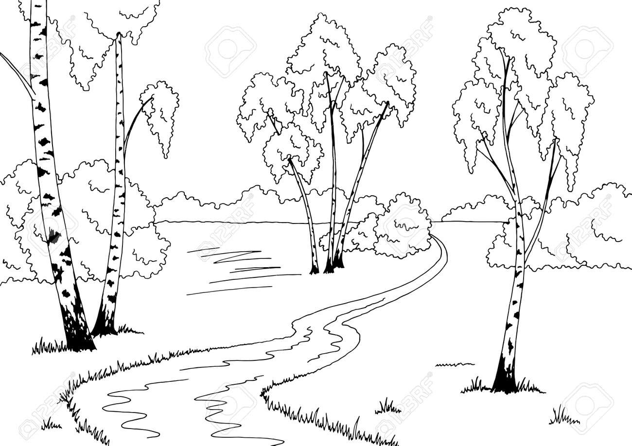 Весенний пейзаж черно белый для детей