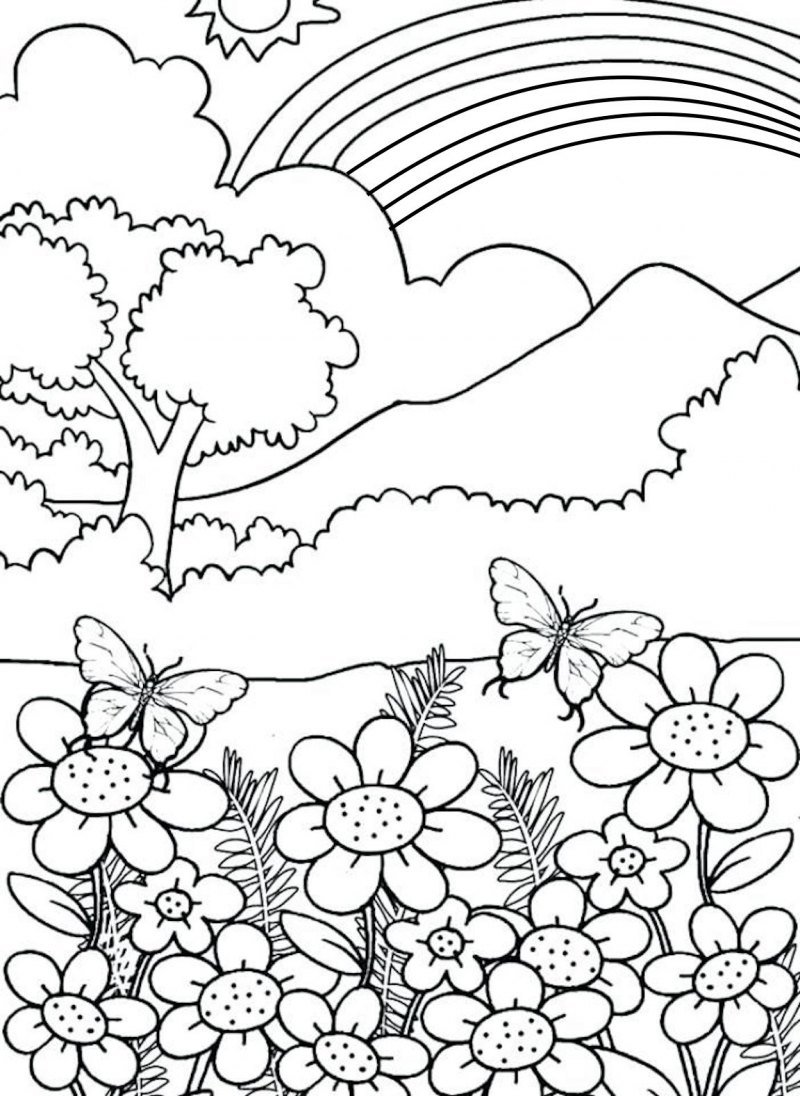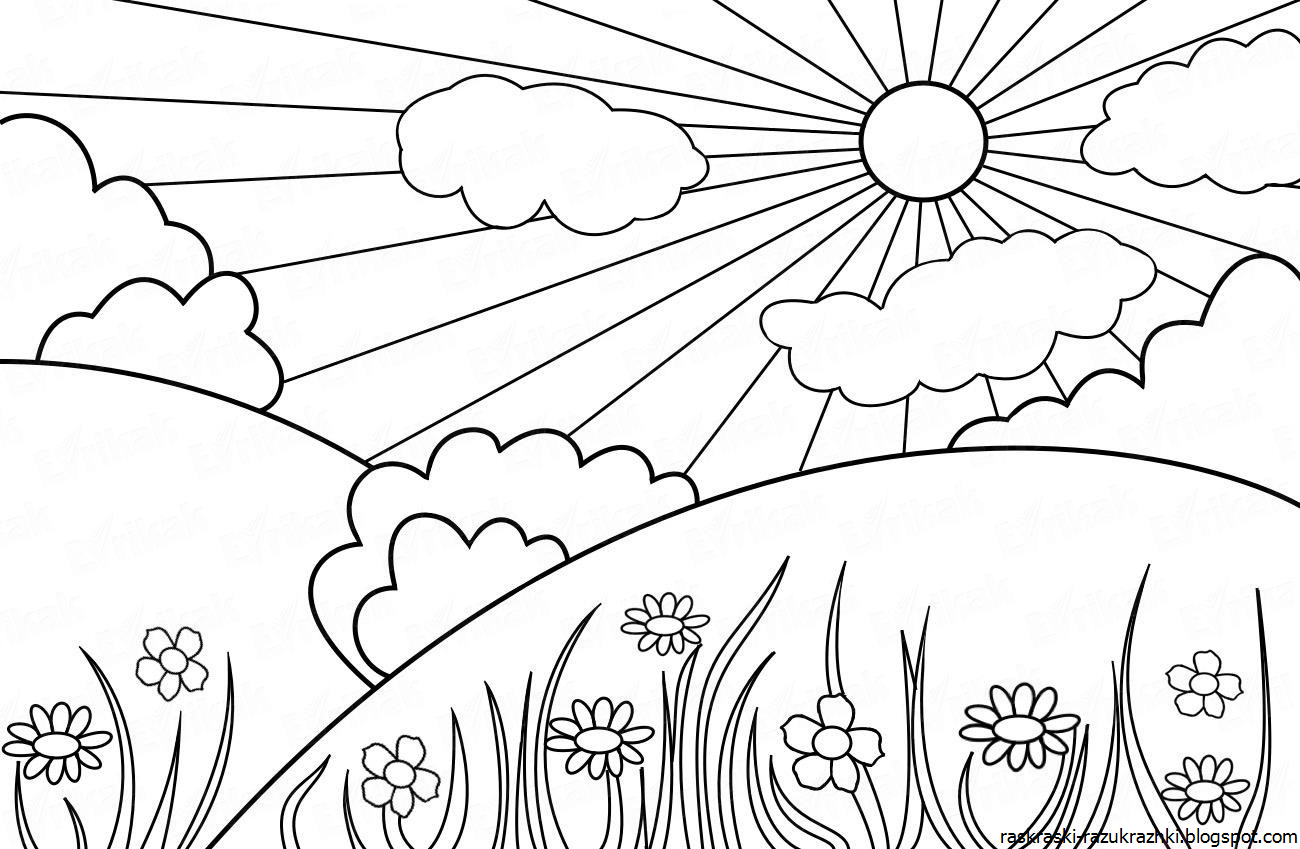 Летний пейзаж раскраска для детей