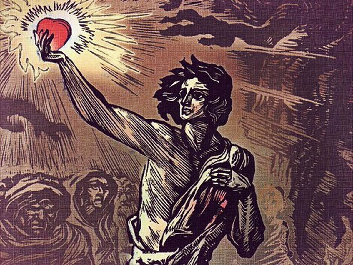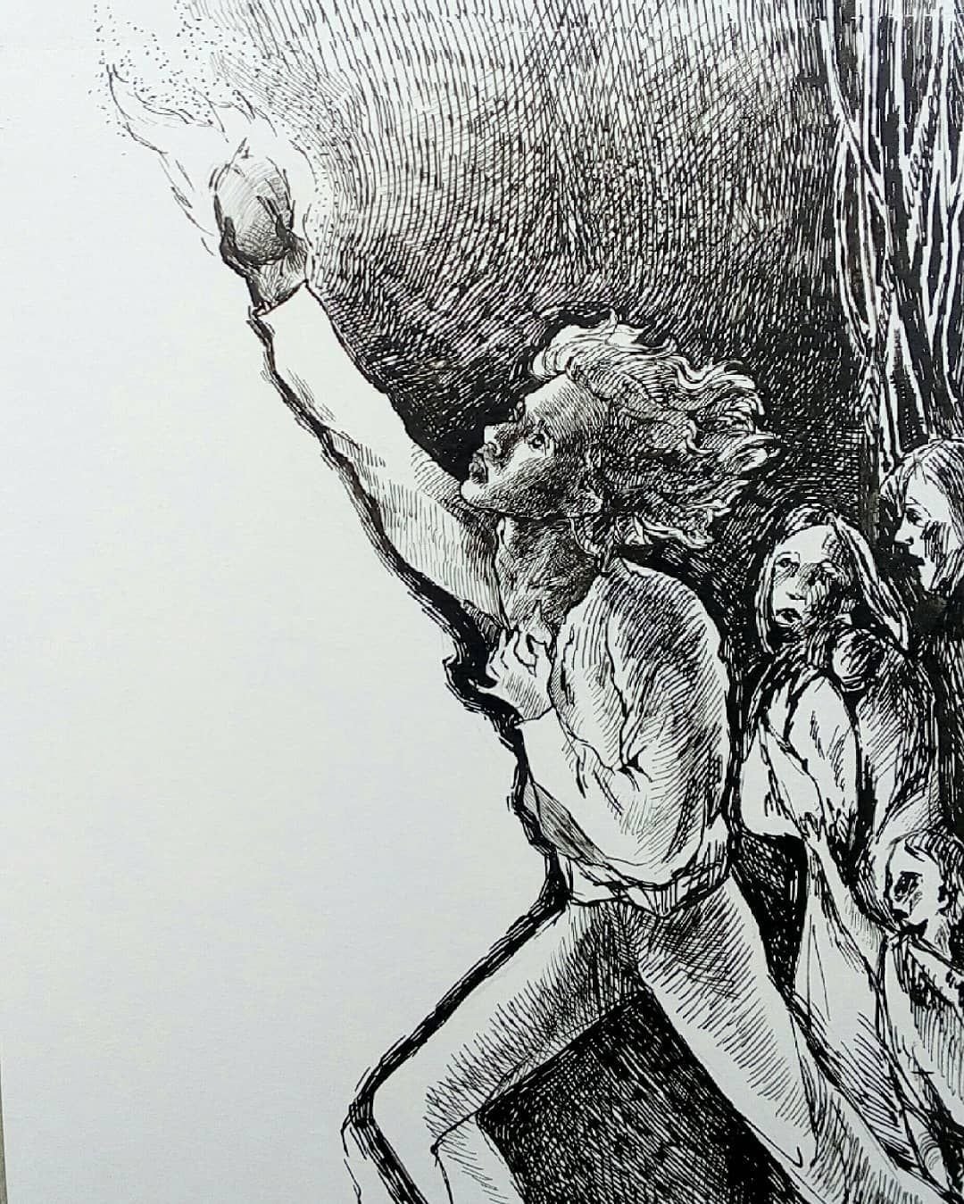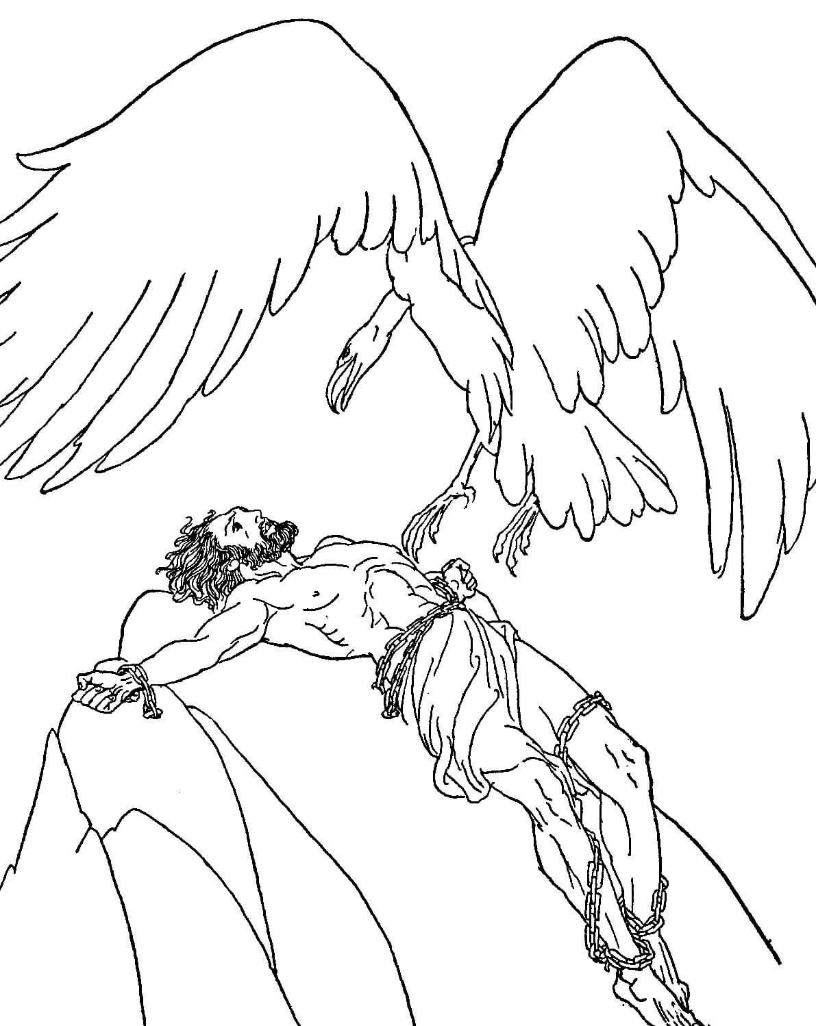 Легкий рисунок для начинающих из мифа Прометея черно белый