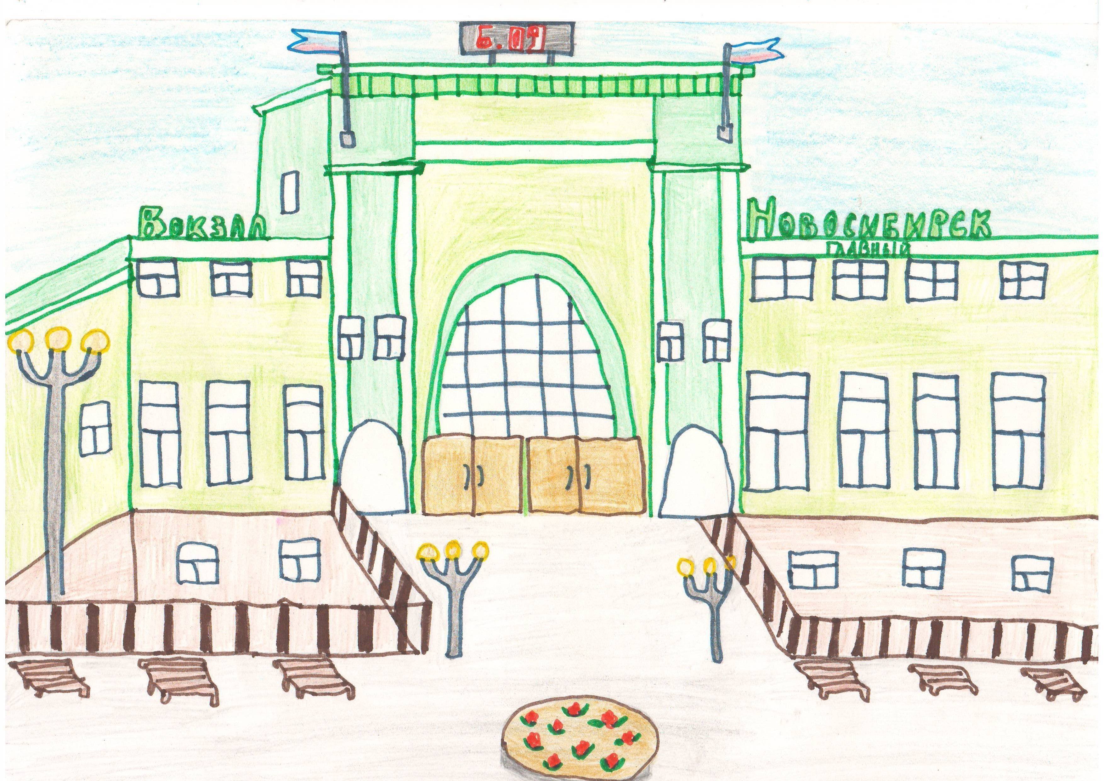 Железнодорожный вокзал Новосибирск рисунок