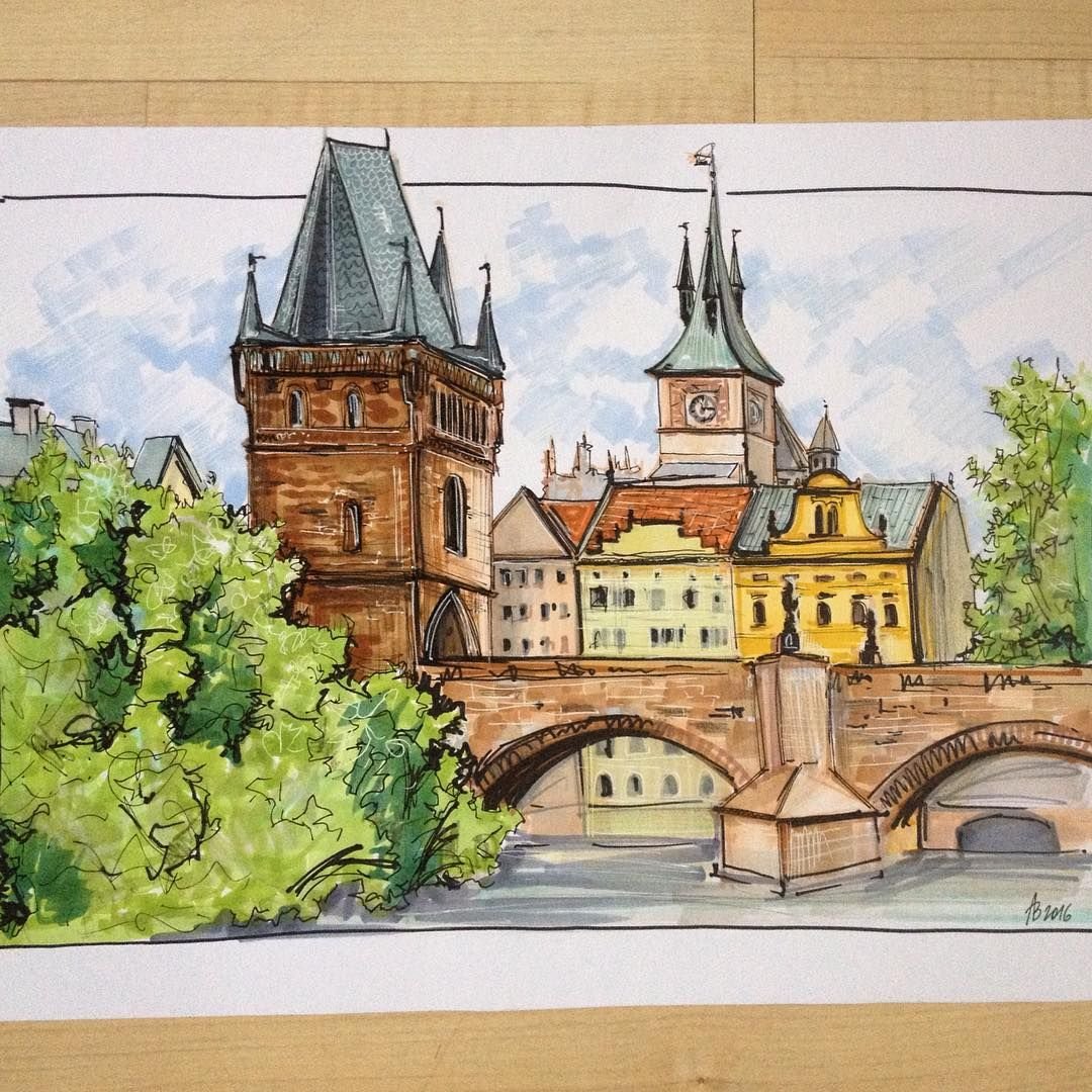 Прага Карлов мост скетч