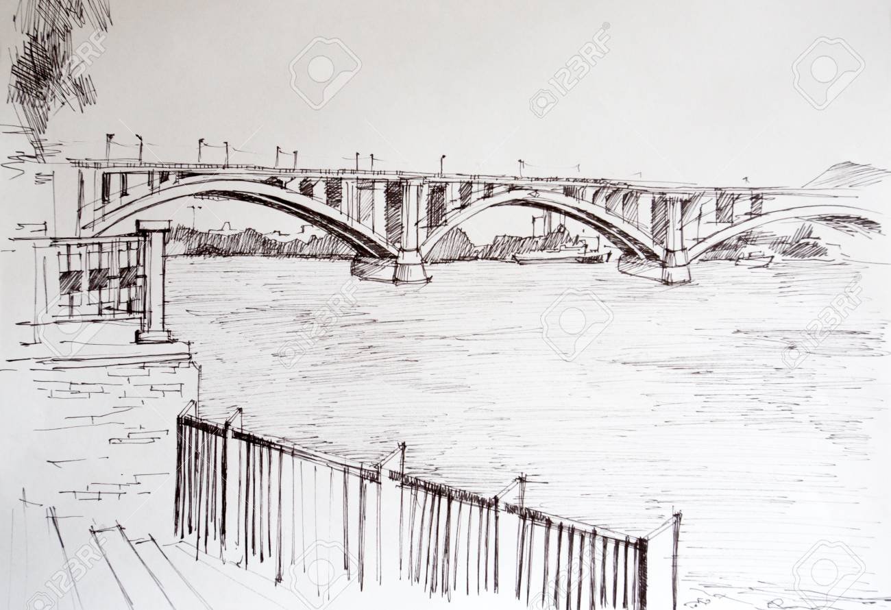 Саратовский мост через Волгу рисунок