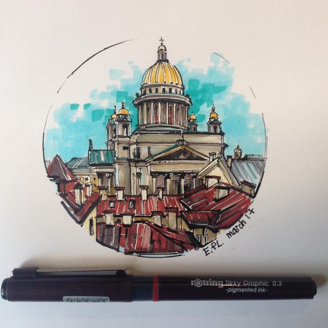 Архитектура скетчинг маркерами Питер