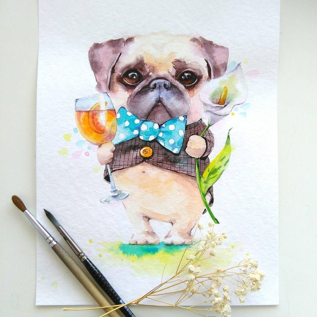 Скетч Мопс акварель