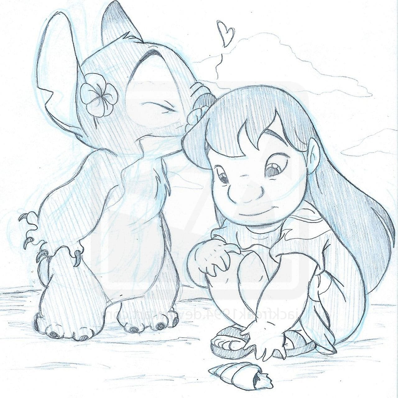 Лило и Стич рисунок карандашом для срисовки