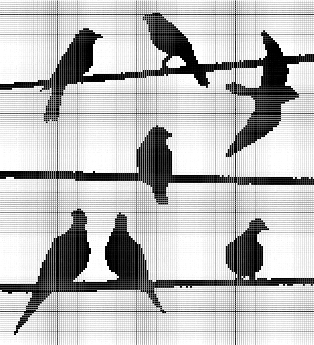 Вышивка крестом монохром птички