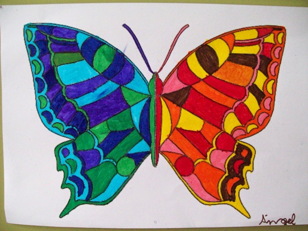 Бабочка холодными и теплыми цветами