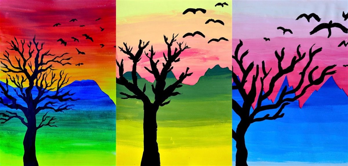 Контрастные рисунки красками легкие