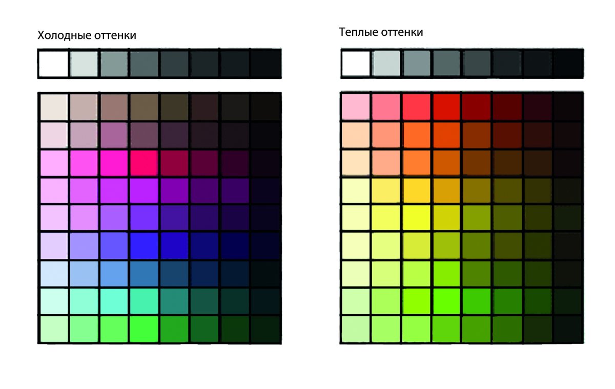 Палитра холодных и теплых оттенков