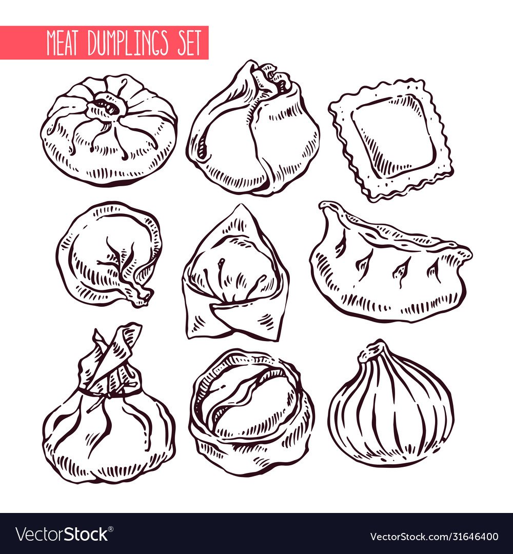 Пельмени манты хинкали вектор