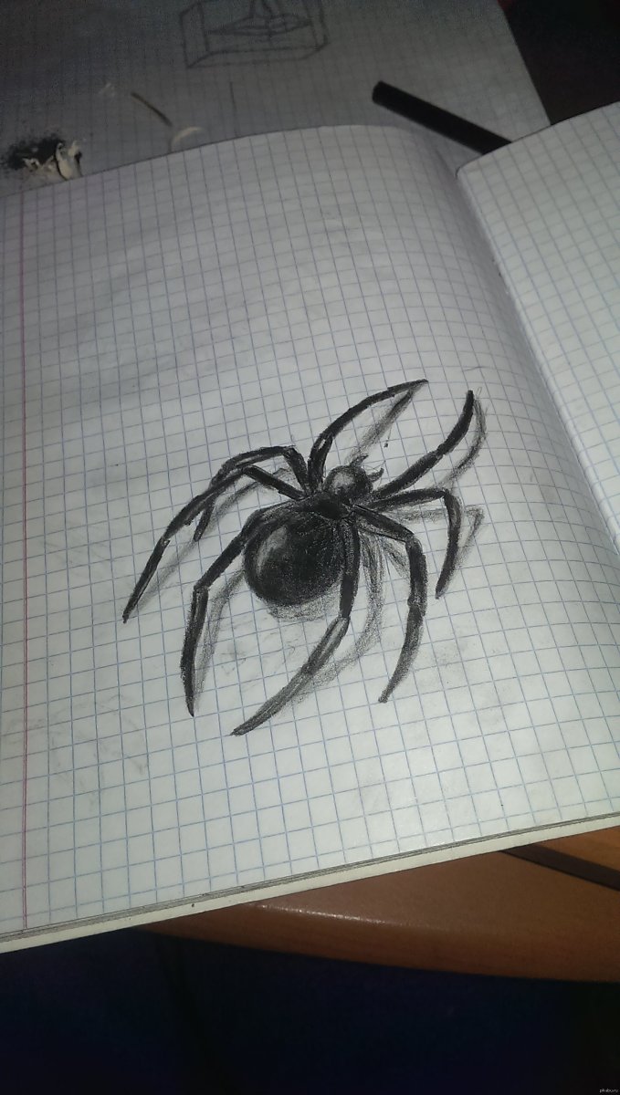 Нарисовать паука карандашом