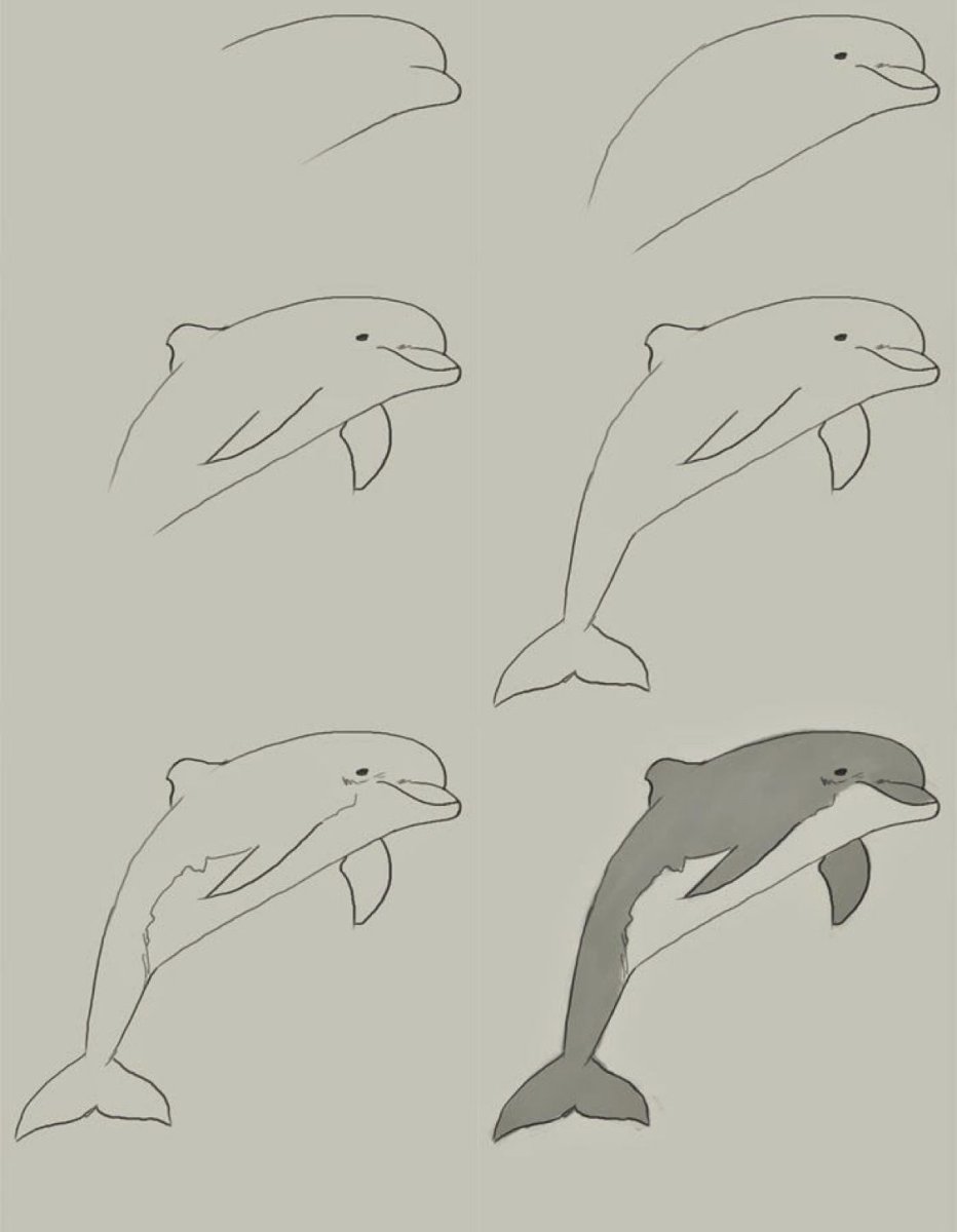 Поэтапное рисование дельфина