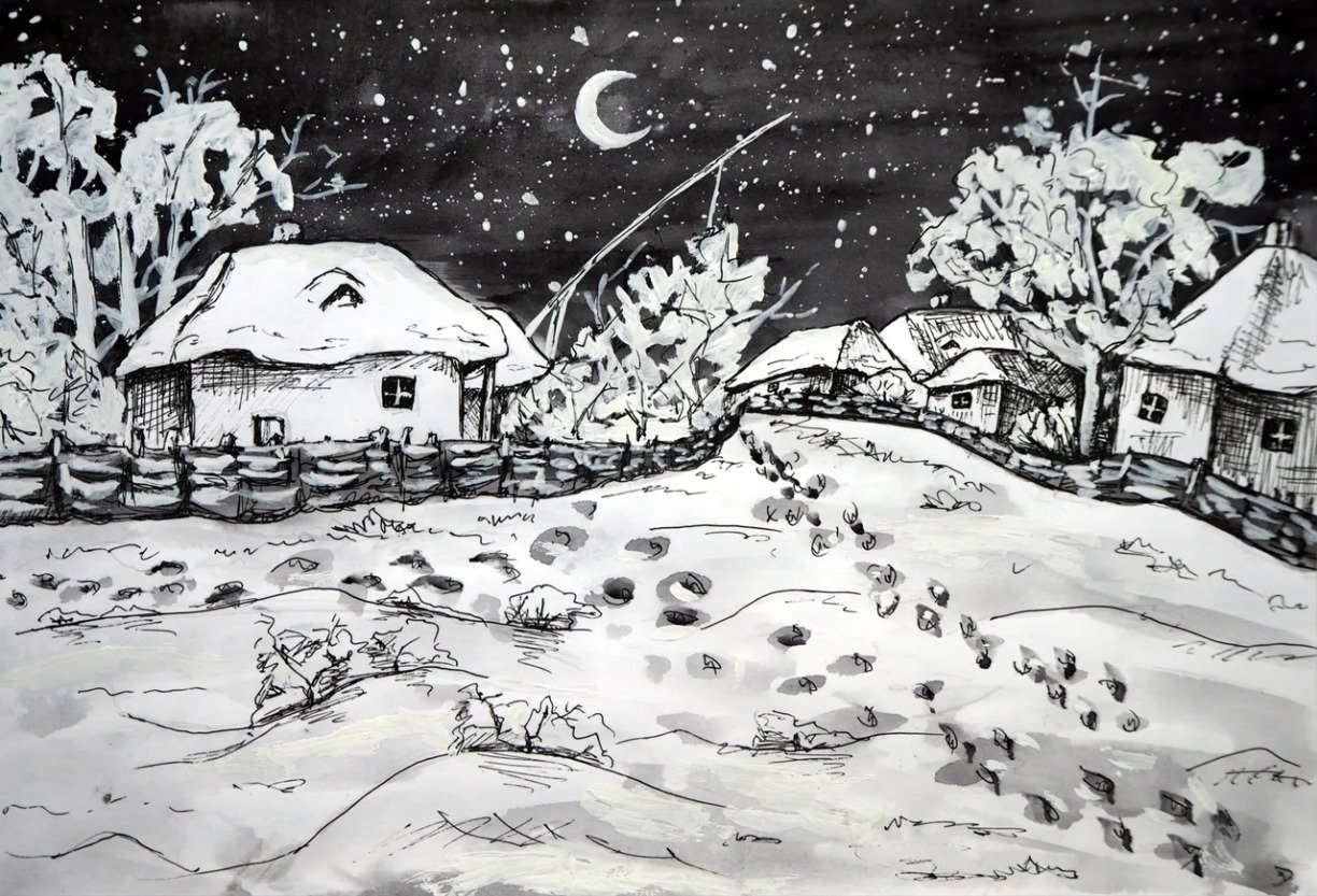 Ночь перед Рождеством Гоголь иллюстрации карандашом