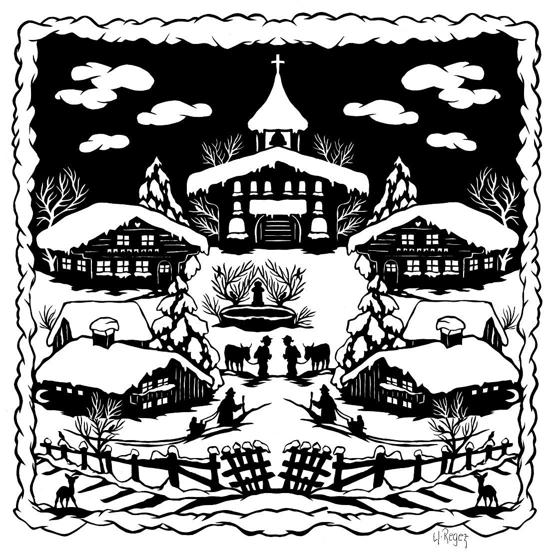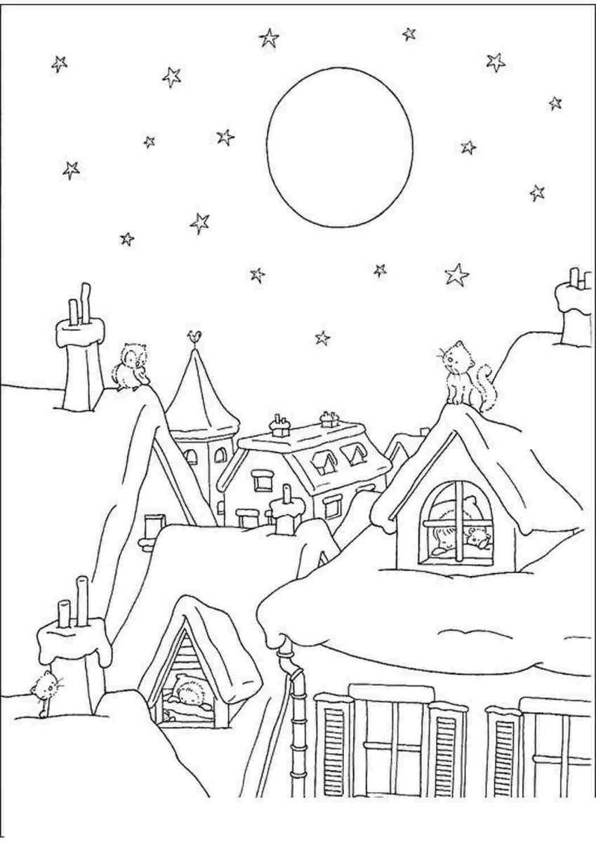 Иллюстрация к сказке ночь перед Рождеством раскраска