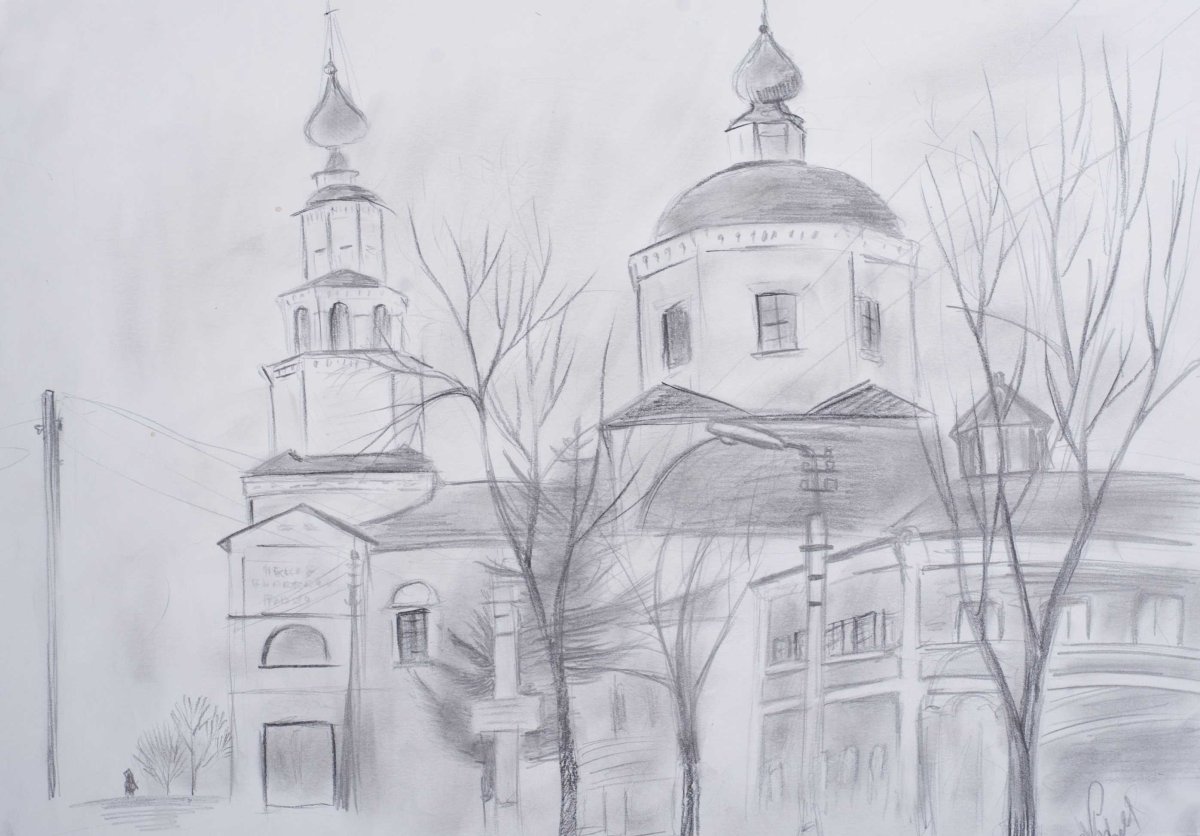 Свято-Троицкий кафедральный собор Калуга карандашом