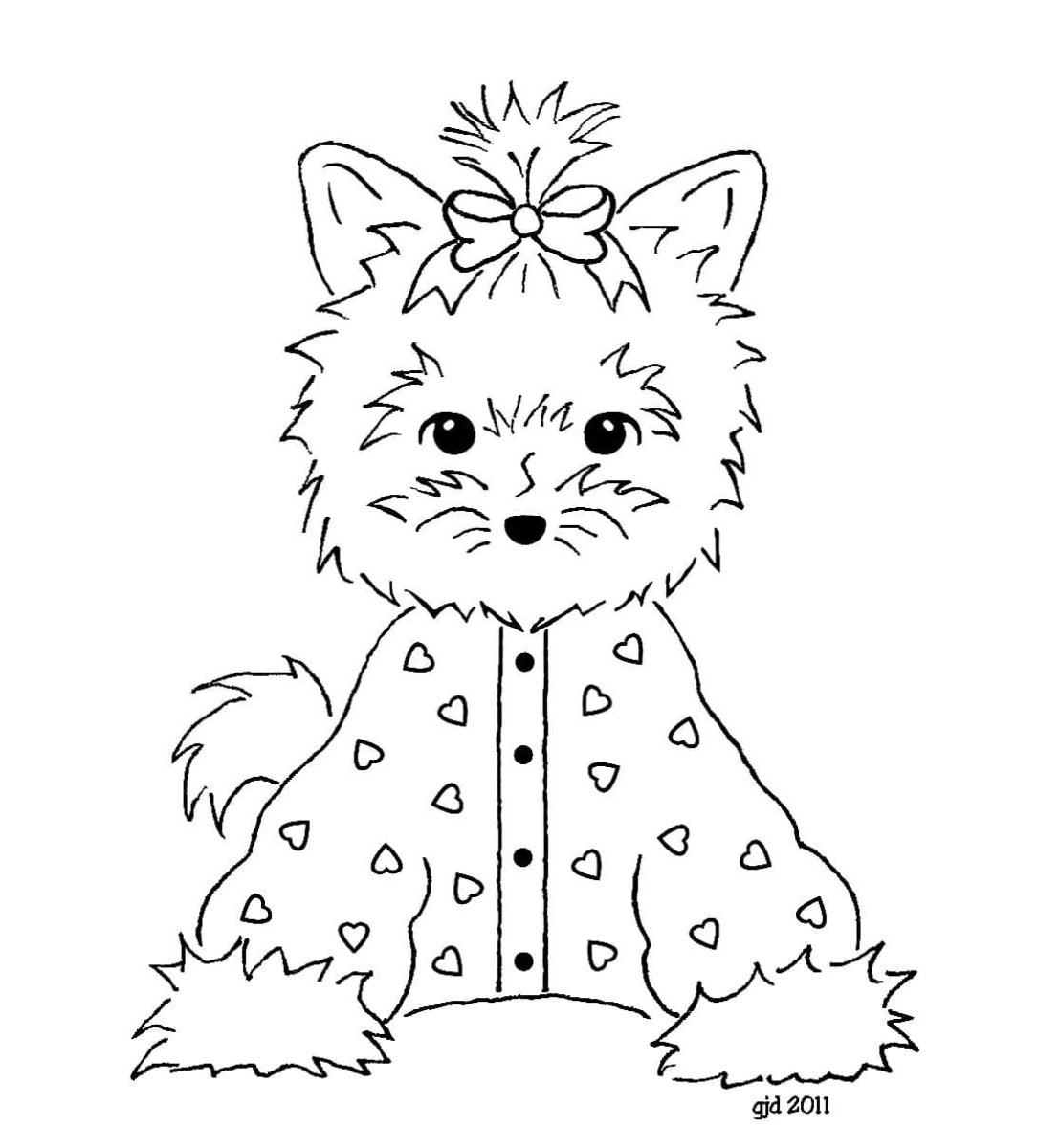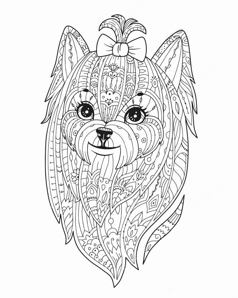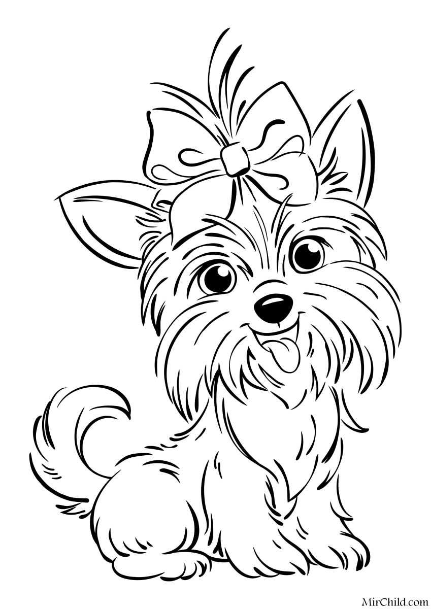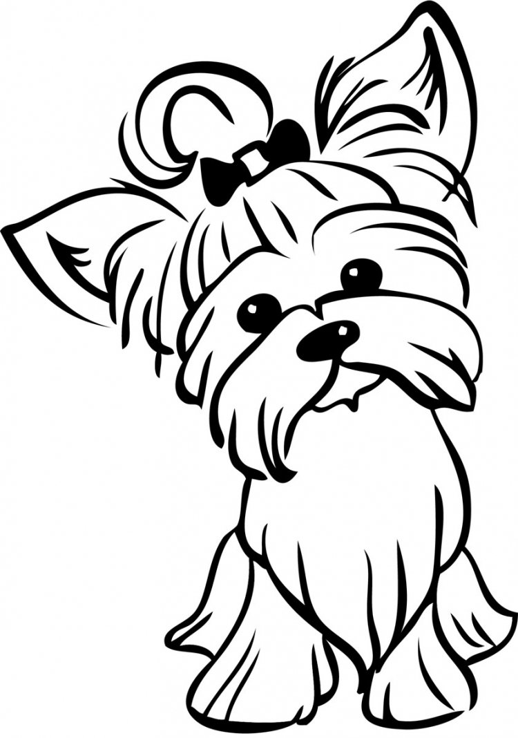 Раскраски собаки Йоркширский терьер с бантиком