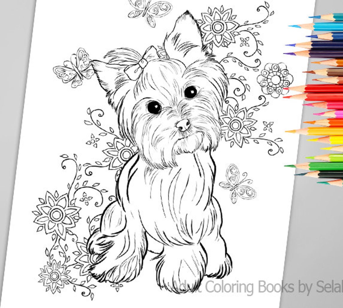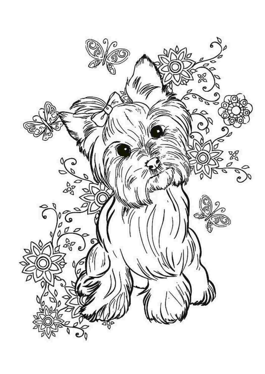 Сложные раскраски щенки Йоркширский терьер сложные