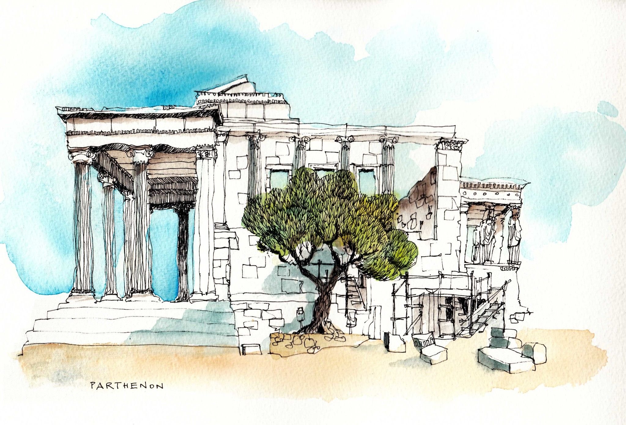 Греция Акрополь скетчинг