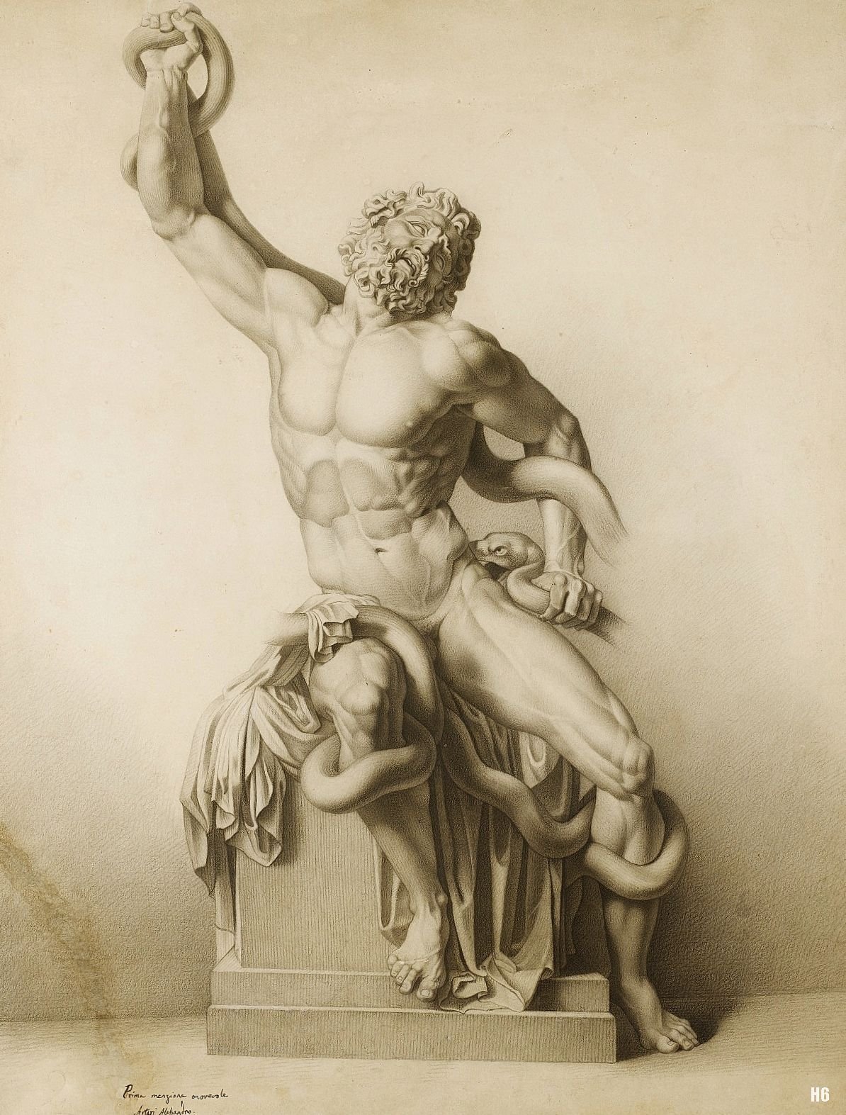 Академический рисунок гипсовой головы Лаокоон