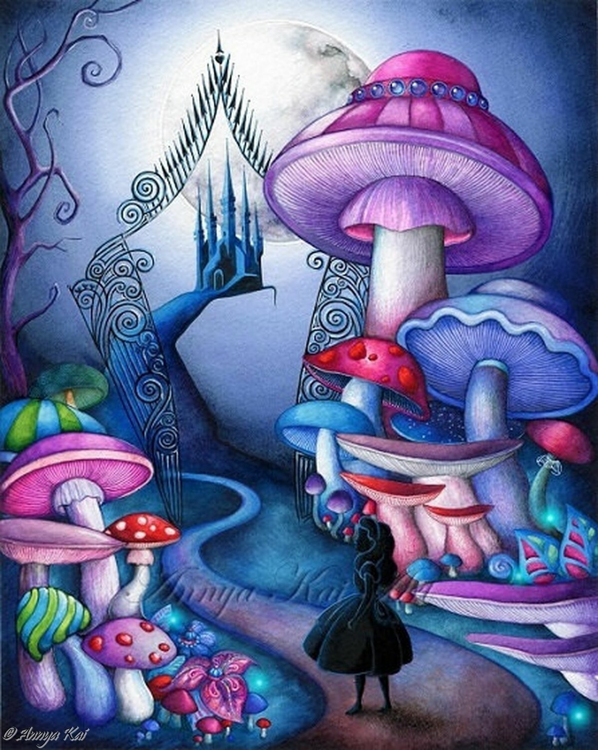 Алиса в стране чудес грибы рисунок