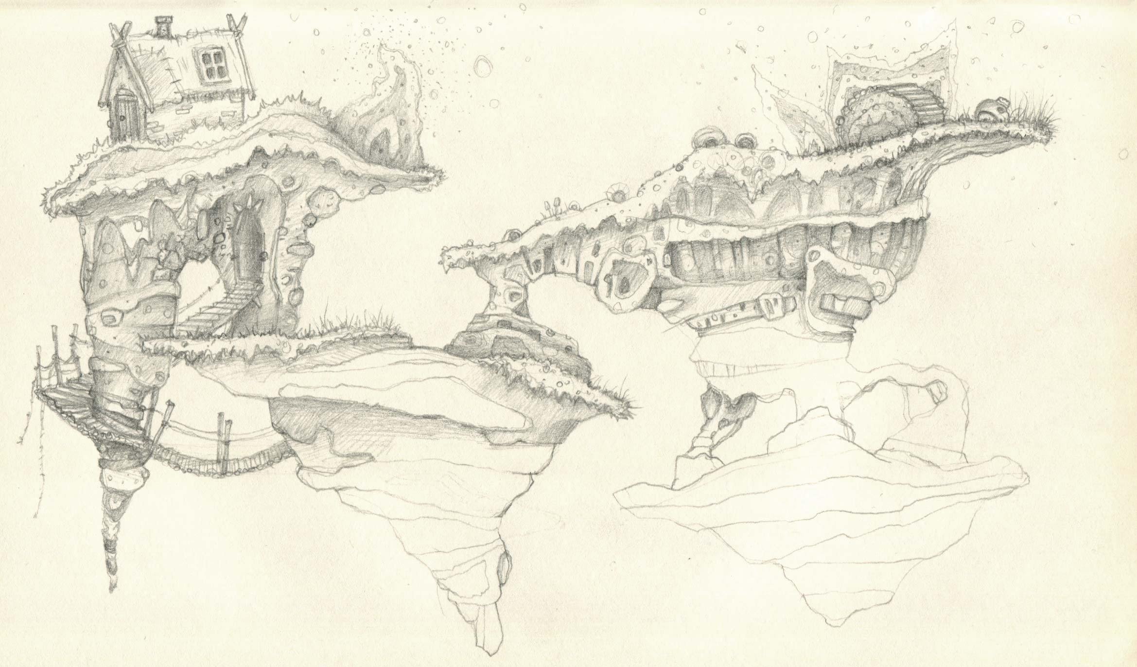Фантастический пейзаж карандашом