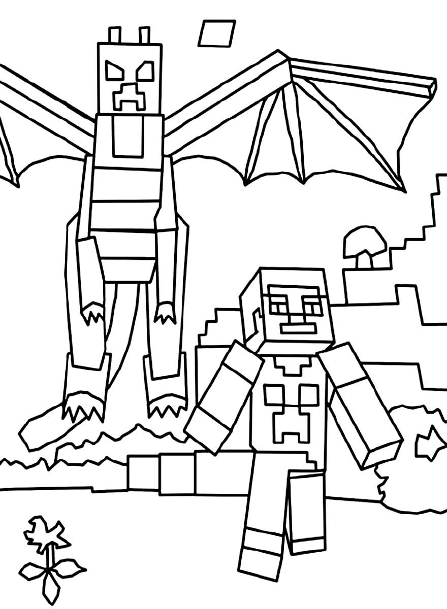 Раскраски для мальчиков майнкрафт ЭНДЕР дракон
