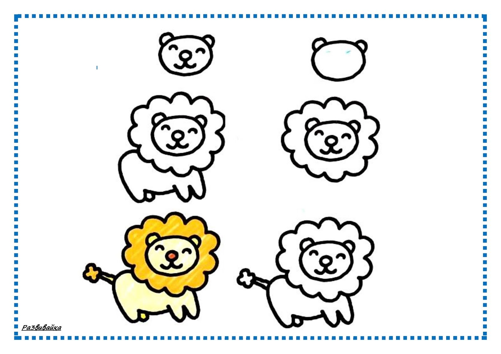 Рисуем мордочки животных поэтапно для детей