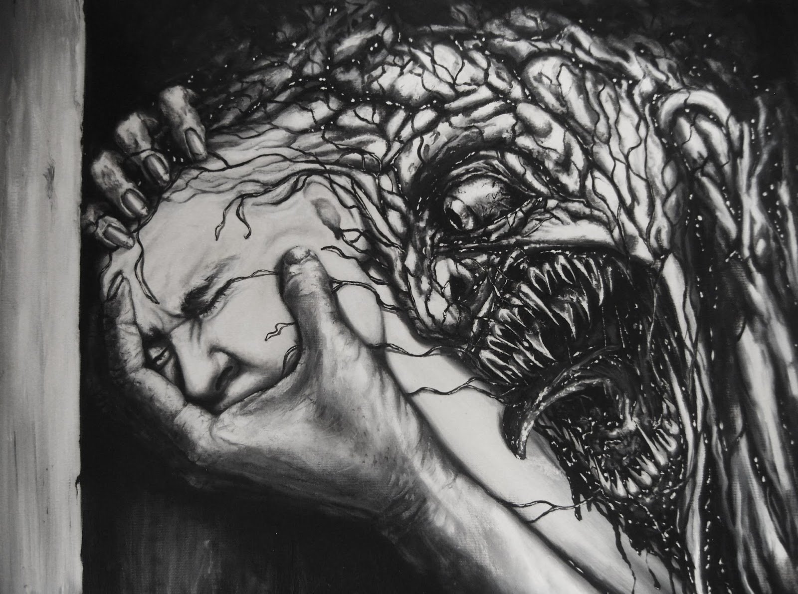 Жуткий черно белый арт