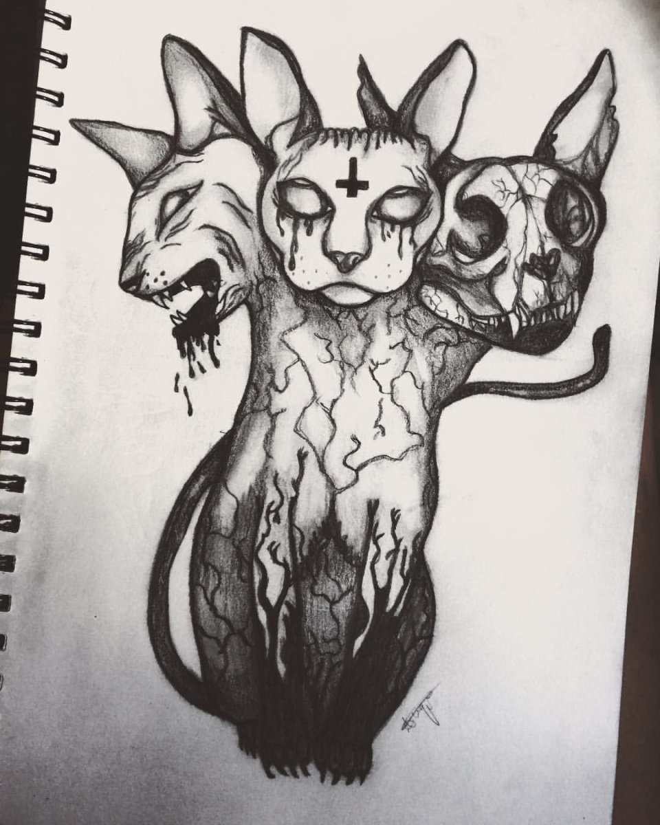 Эскиз тату кот демон