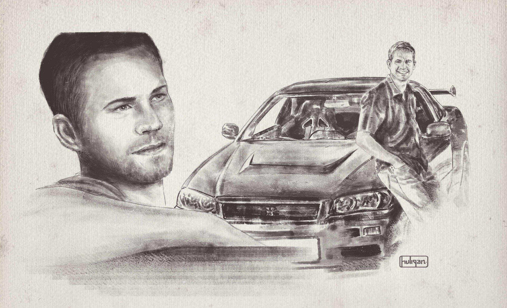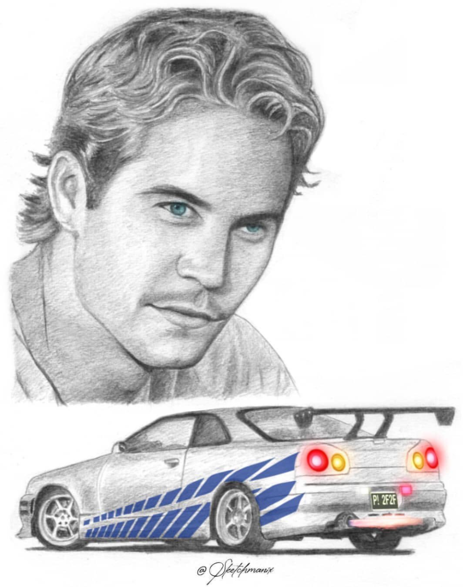 Пол Уокер рисунок Скайлайн