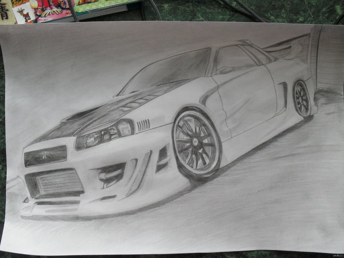 Рисунки машин карандашом Ниссан Скайлайн