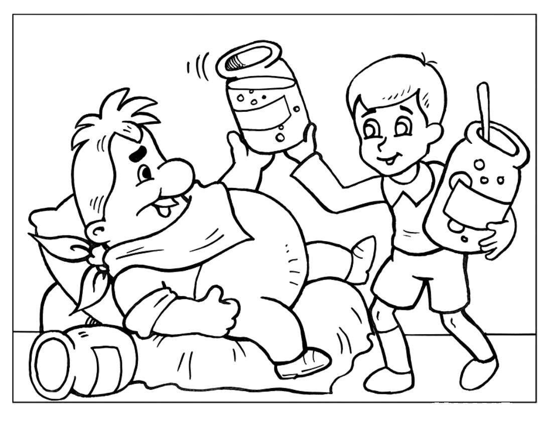 Линдгрен малыш и Карлсон раскраска