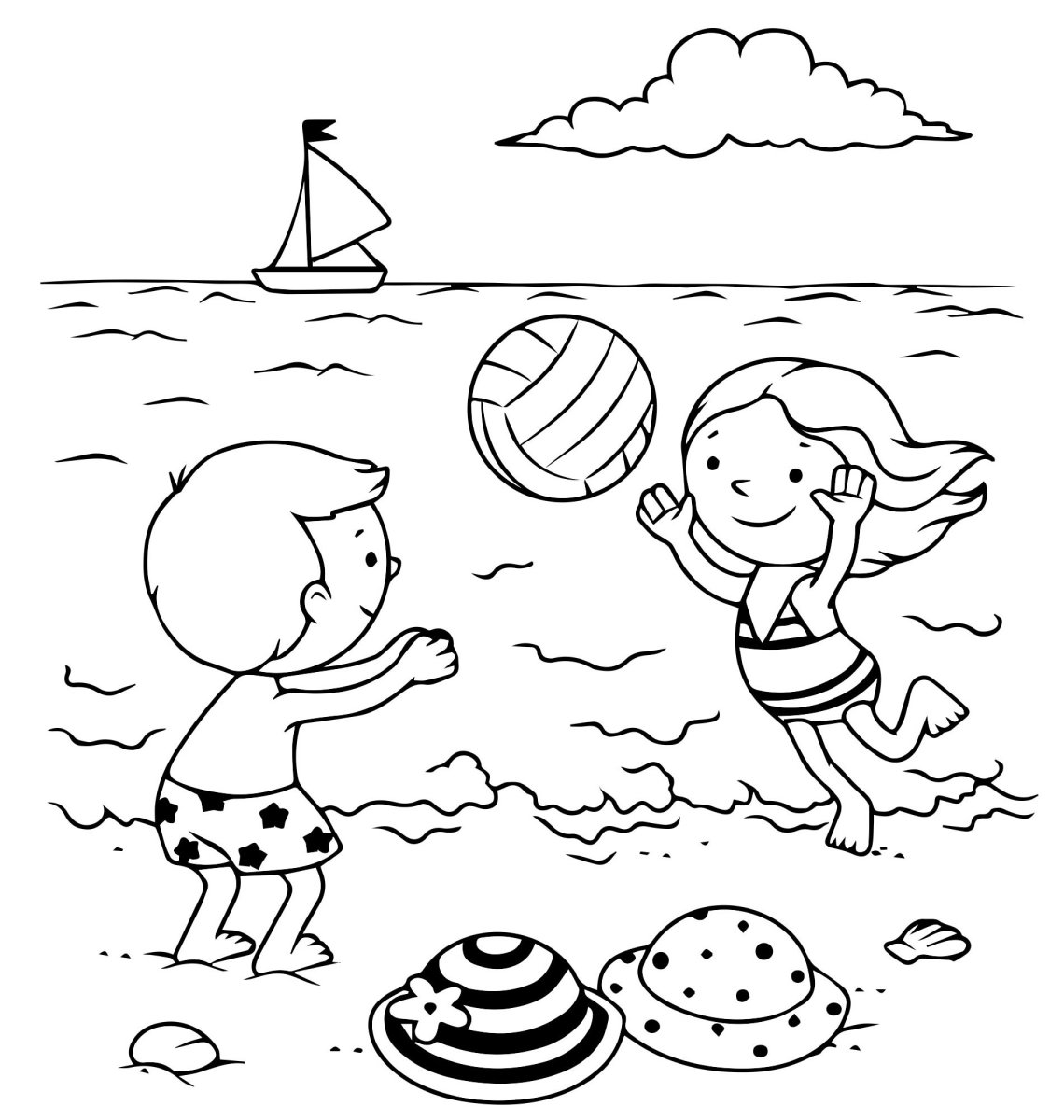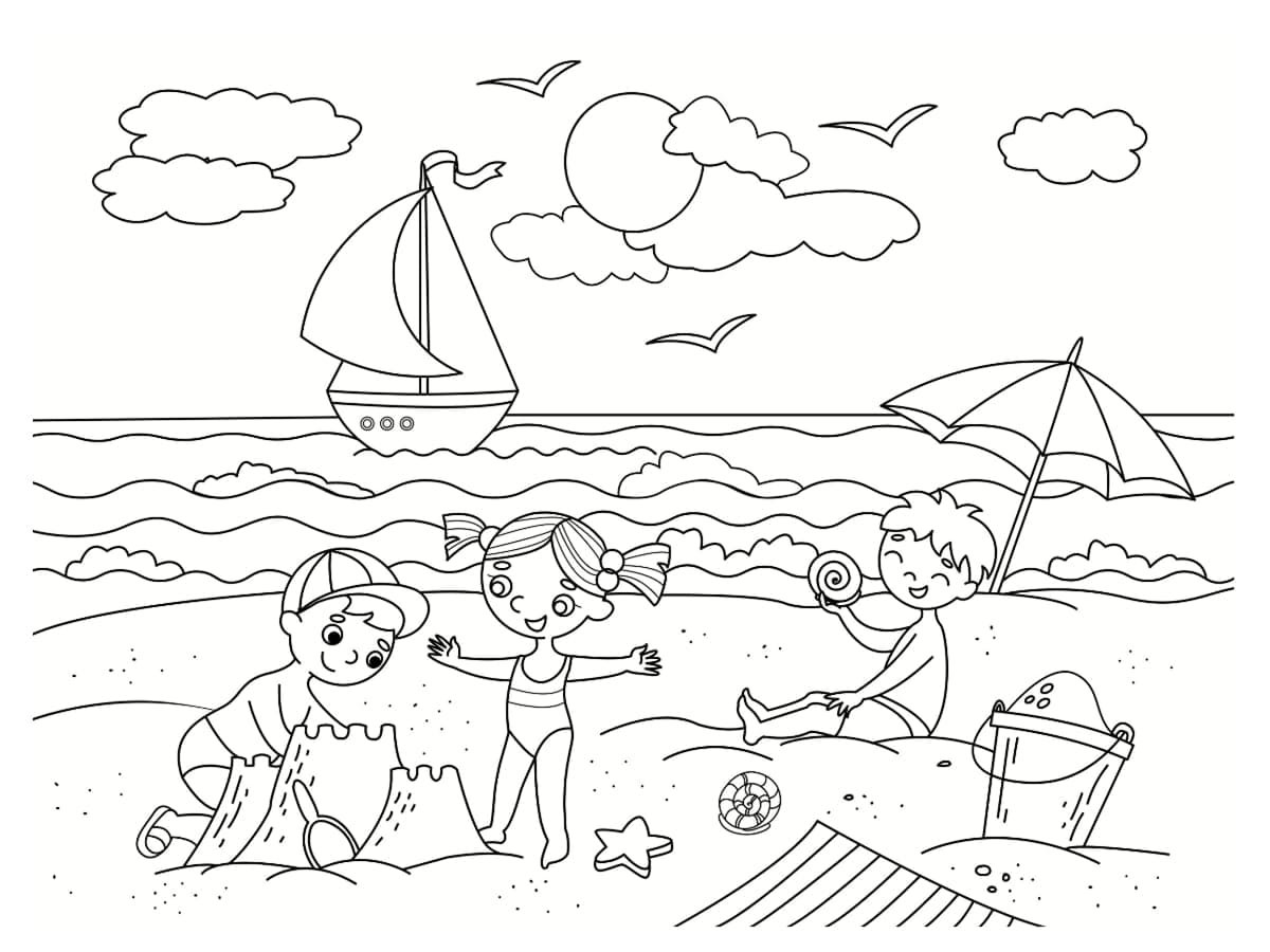 Пляж раскраска для детей