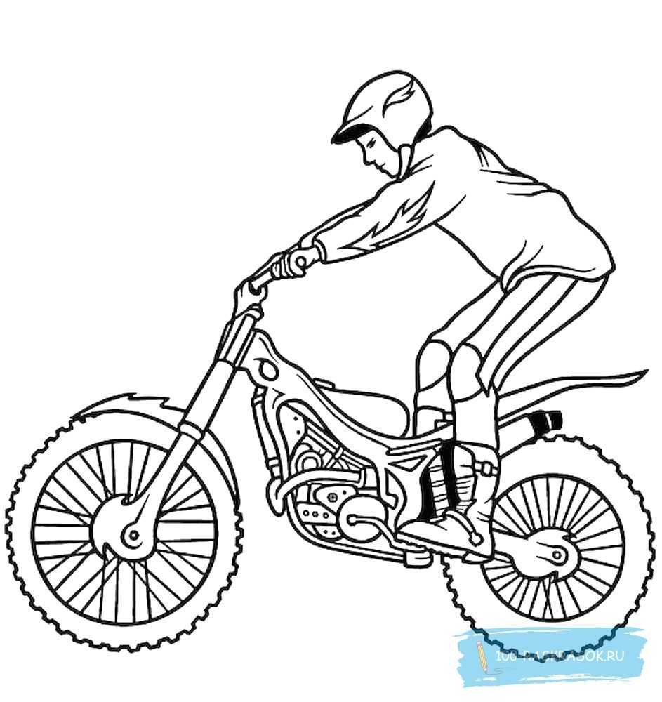 Трюковой мотоцикл раскраска