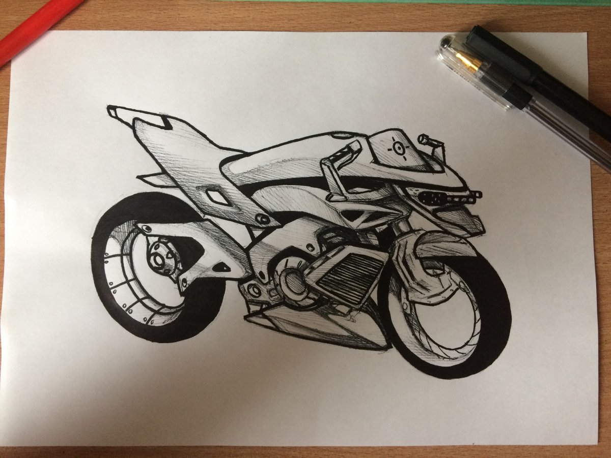 Рисунок мотоцикла карандашом для начинающих