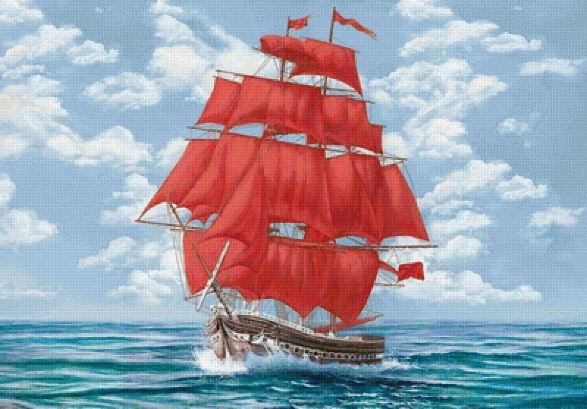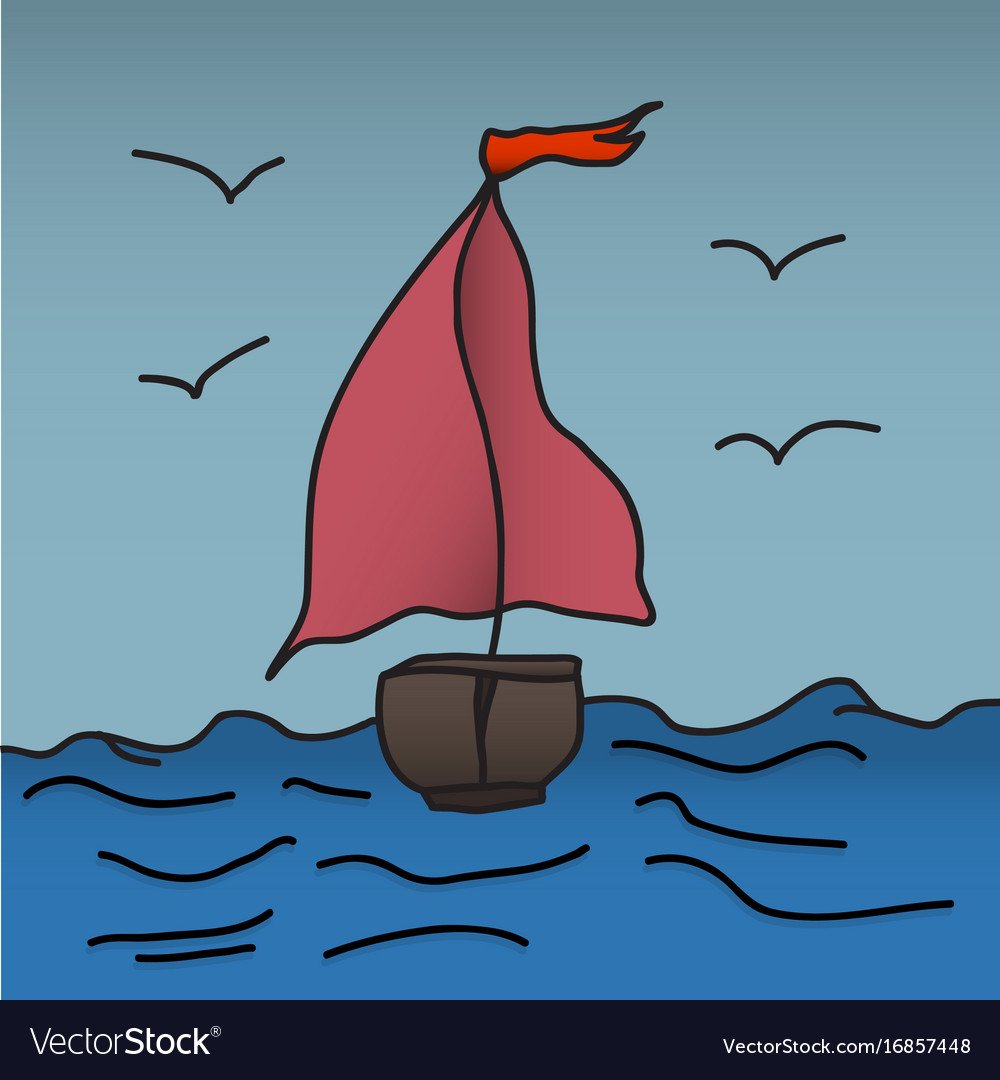 Корабль с алыми парусами рисунок