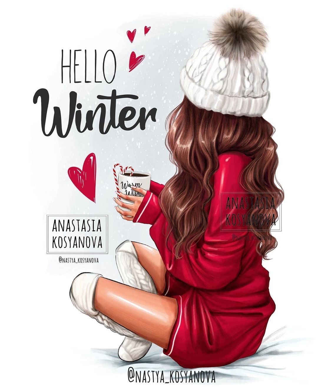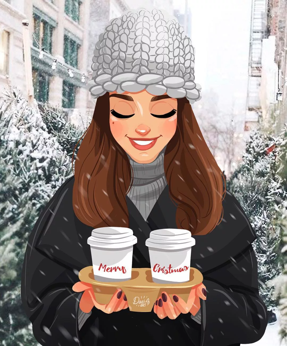 Зимние нарисованные девушки