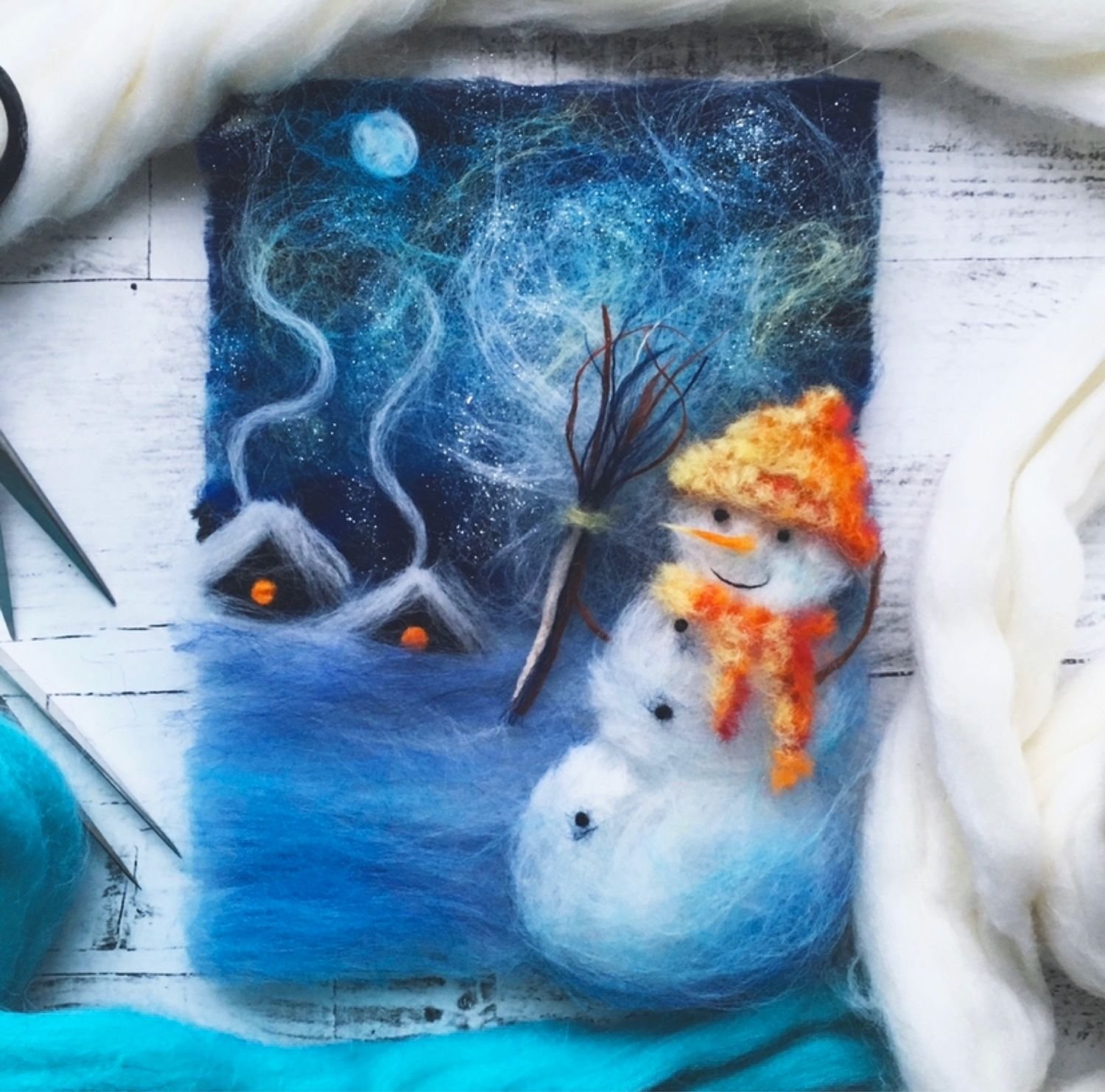 Новогоднее панно из шерсти