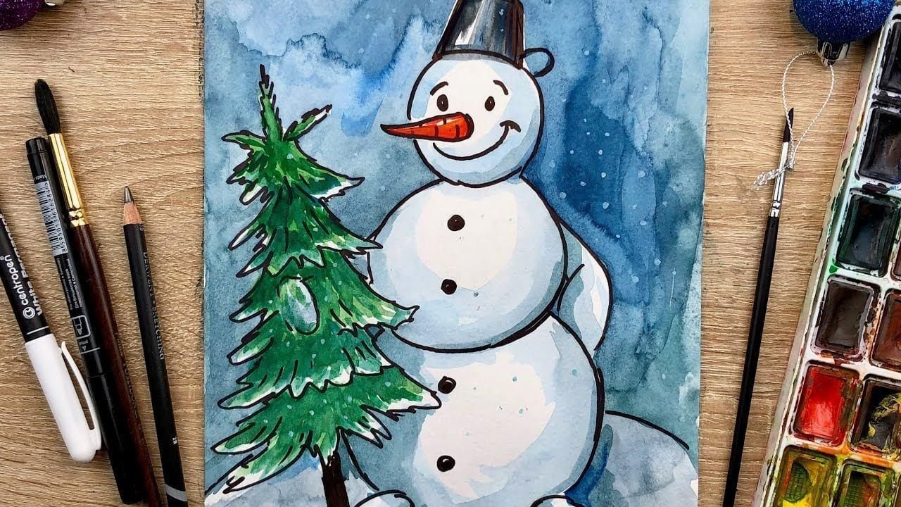 Рисование снеговика красками