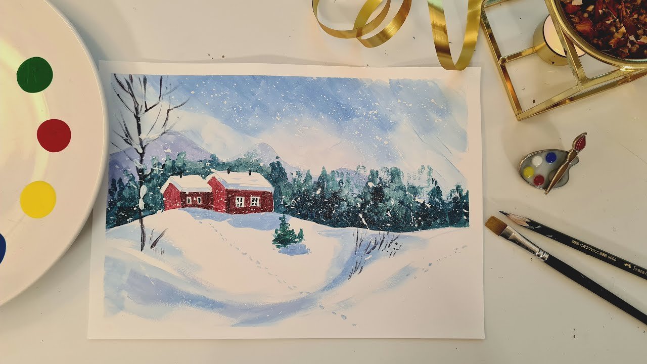 Рисование зубной щеткой зимний пейзаж