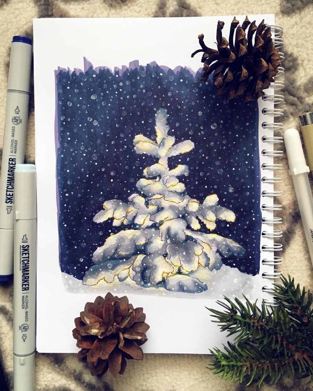 Зимние иллюстрации маркерами