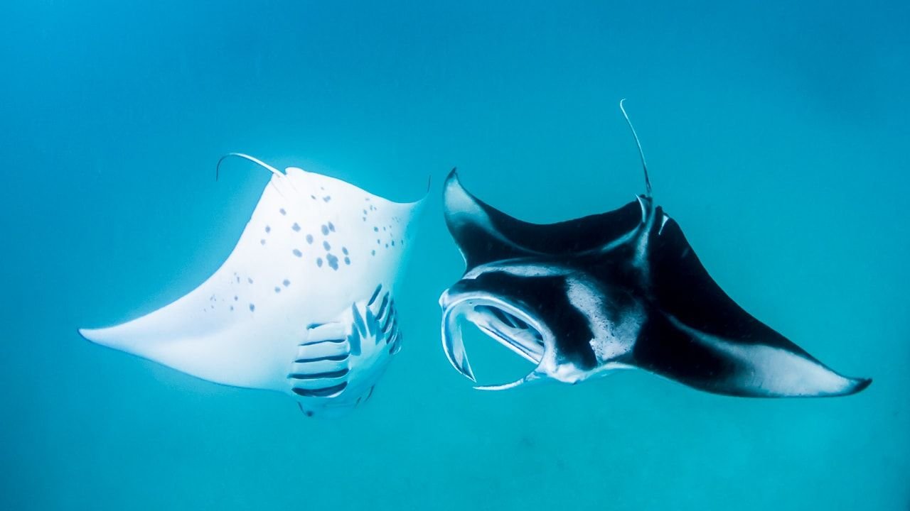 Манты под водой