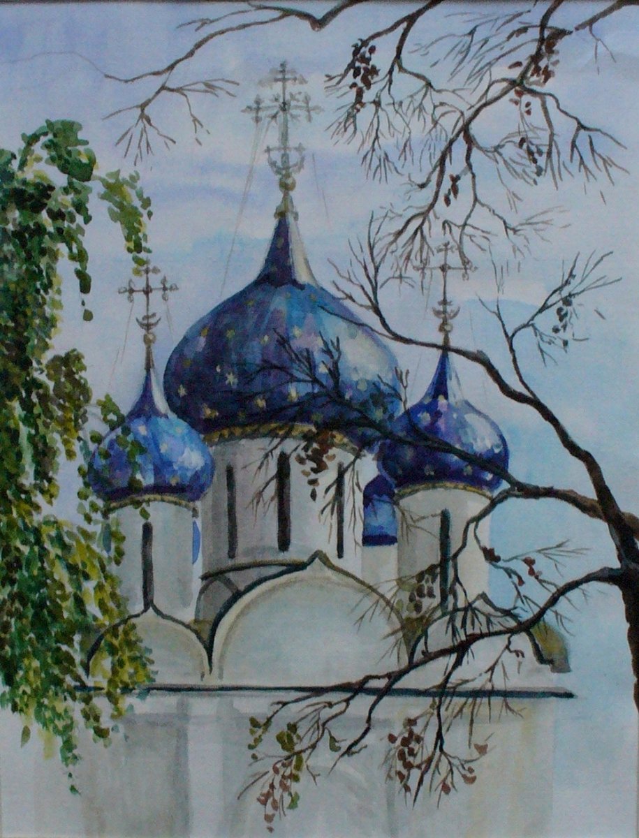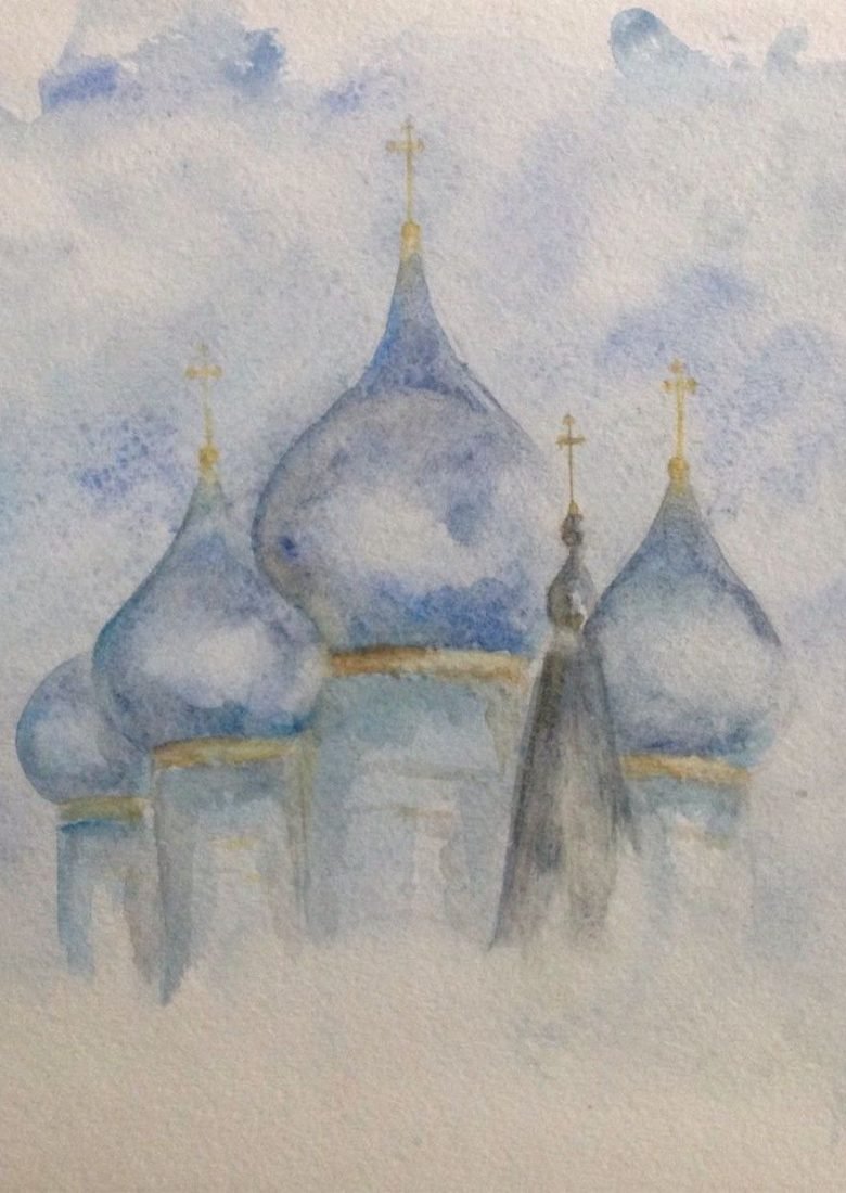 Купол церкви акварель