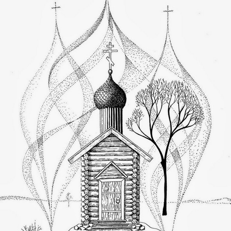 Зарисовка деревянного храма