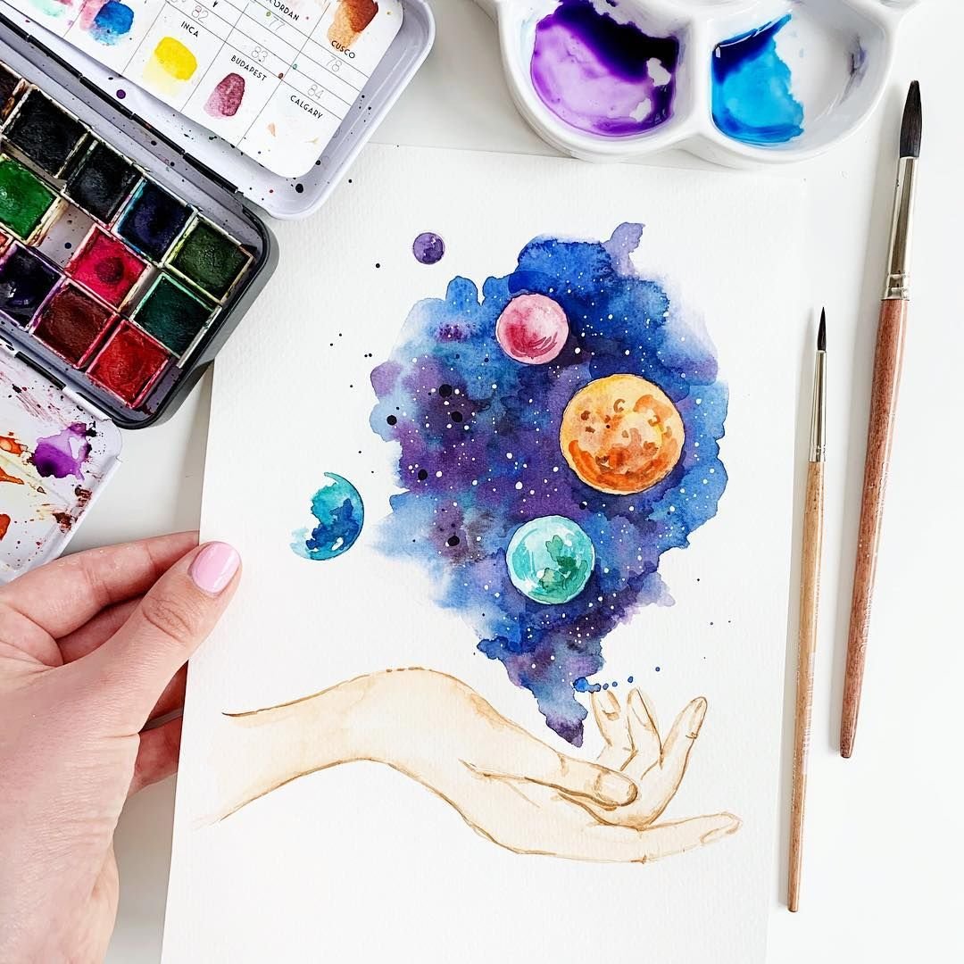 Космос акварель эскиз