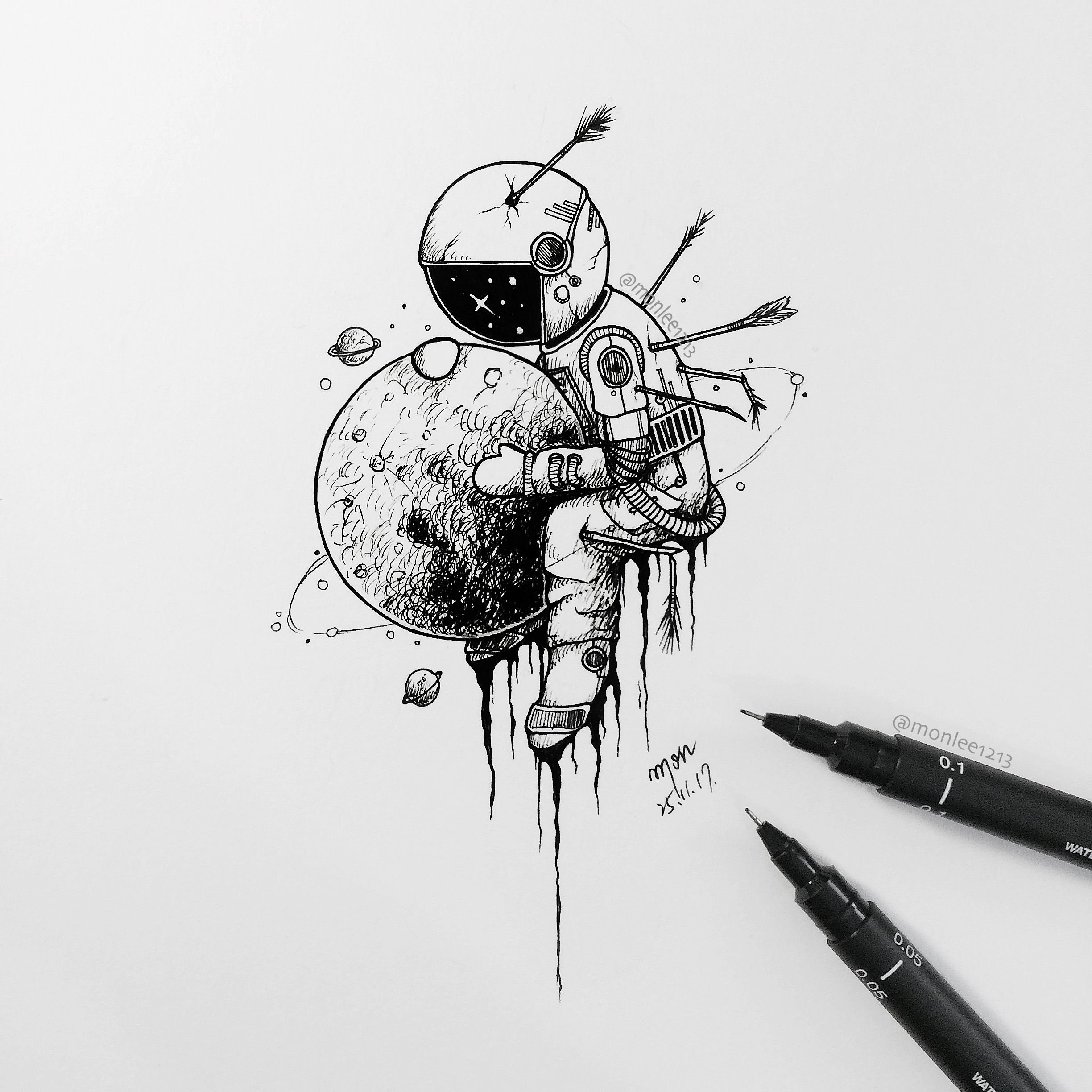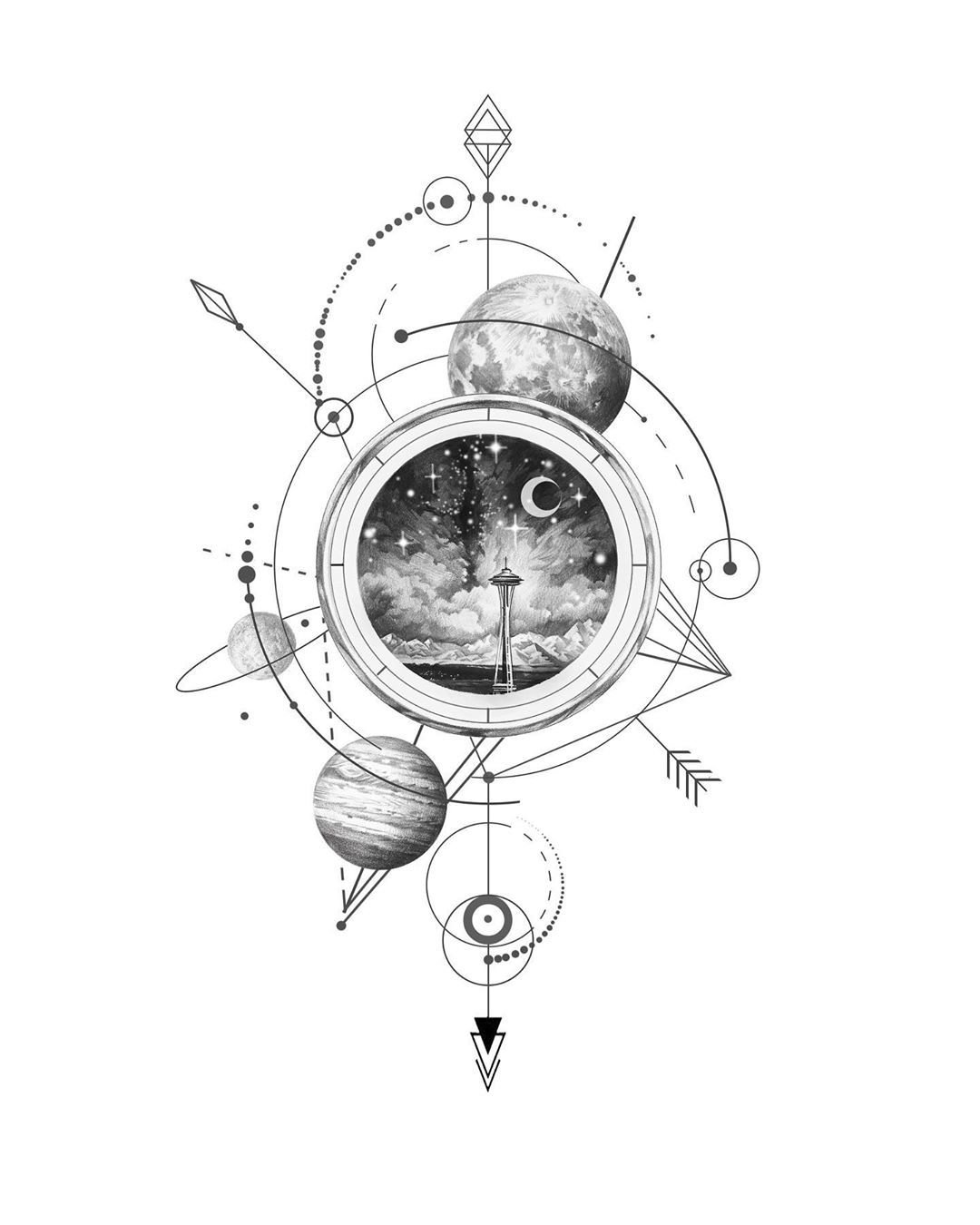 Тату космос эскизы черно белые