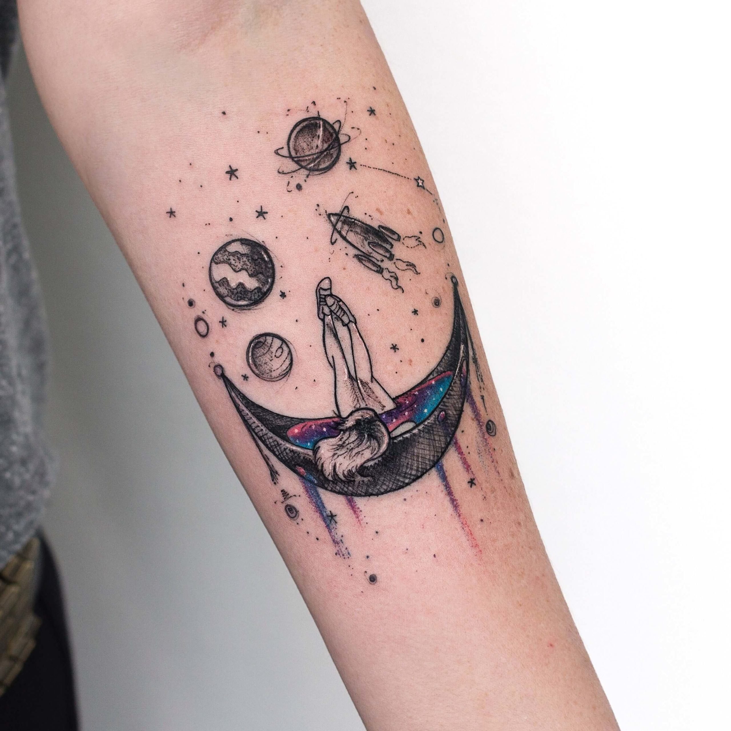 Тату космос на руке для девушек
