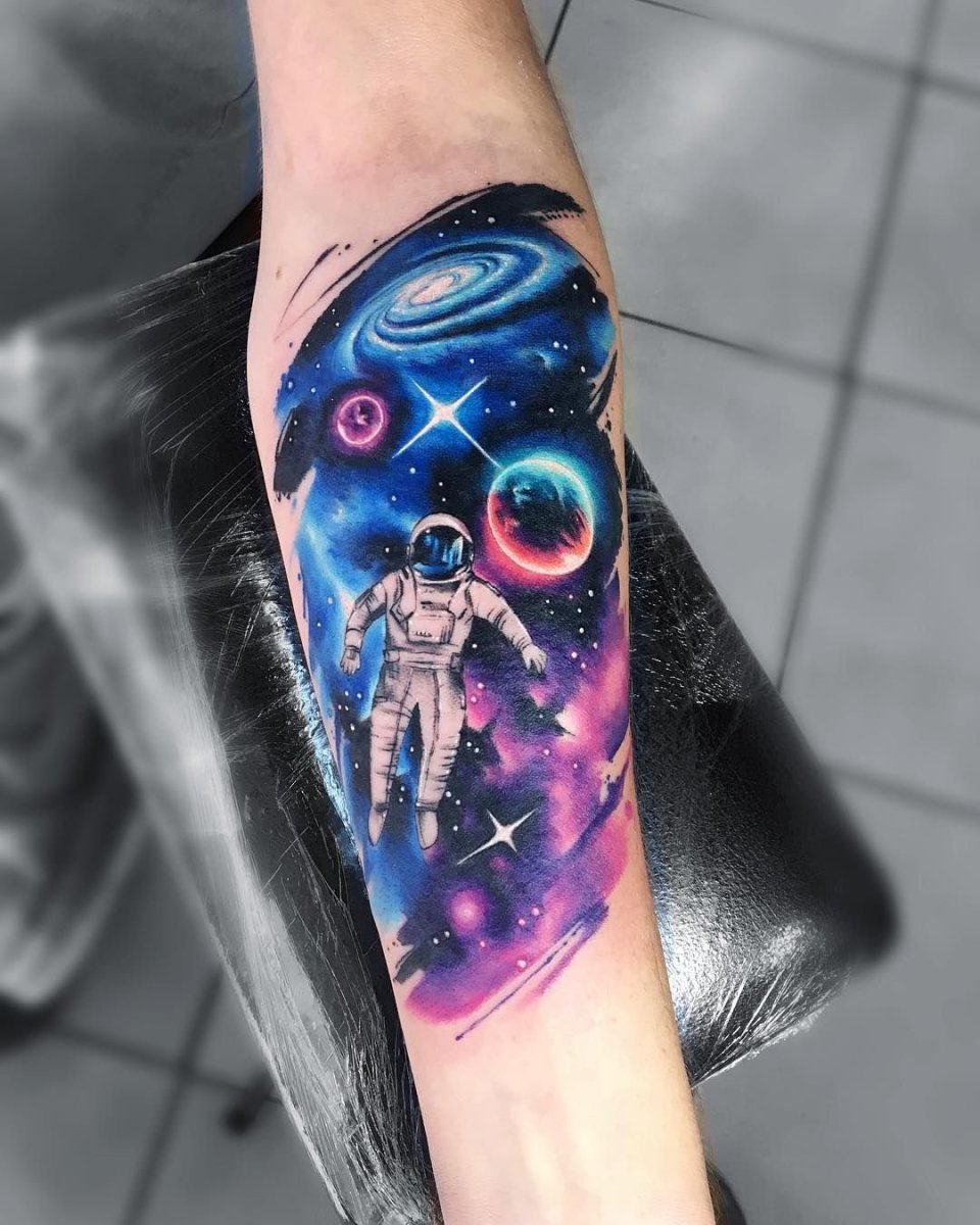 Тату акварель космос
