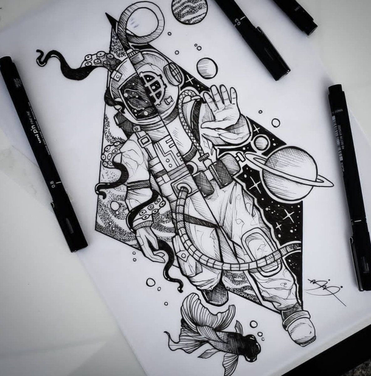 Тату рыбы в космосе